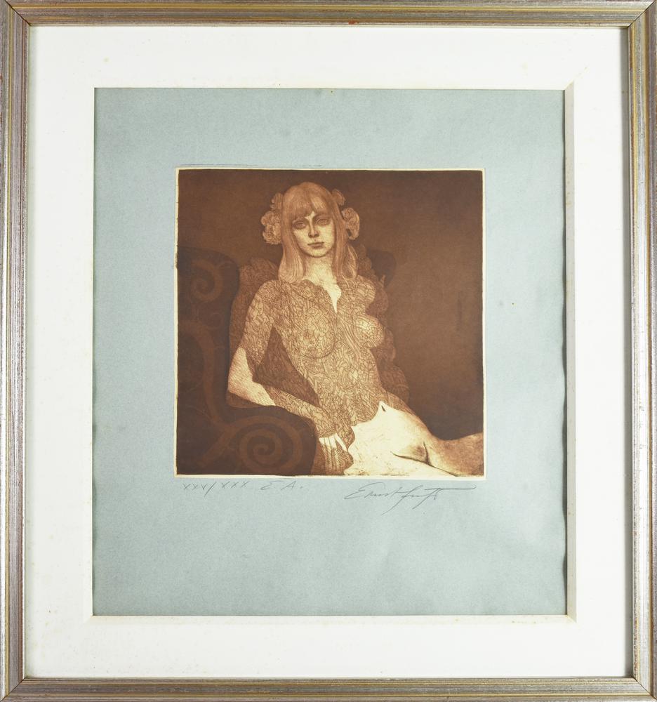 Ernst Fuchs EVA IN NEGLIGE', 1969 acquaforte, cm 30x31,5, su foglio cm 53x46;...
