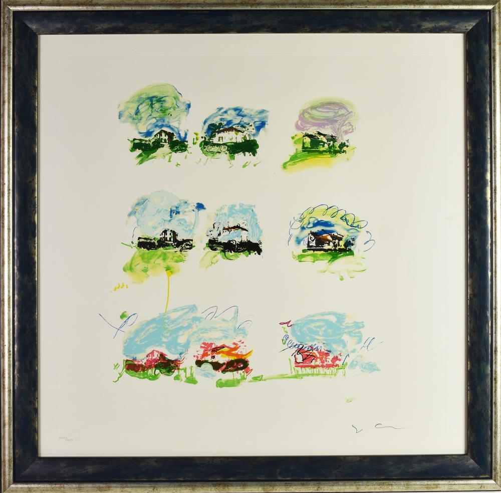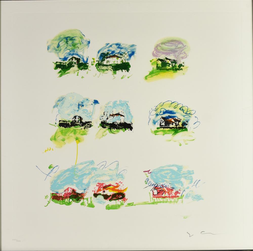 litografia con interventi serigrafici, cm 70x70; es. 120/200