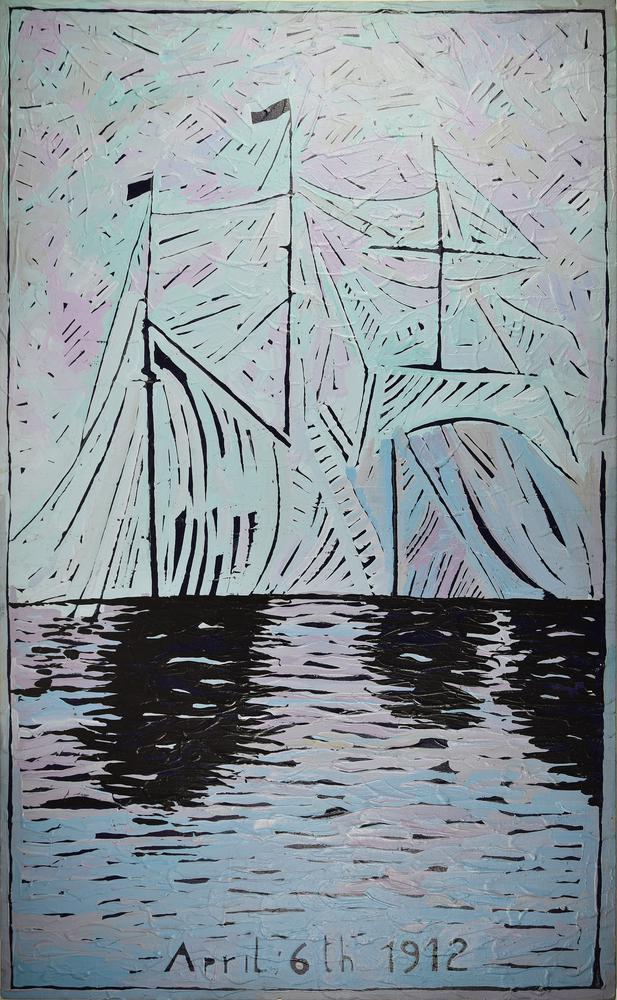 Aldo Mondino BARCA CHE AFFONDA - APRIL 6TH 1912, 1980 olio su tela, cm 140x90...