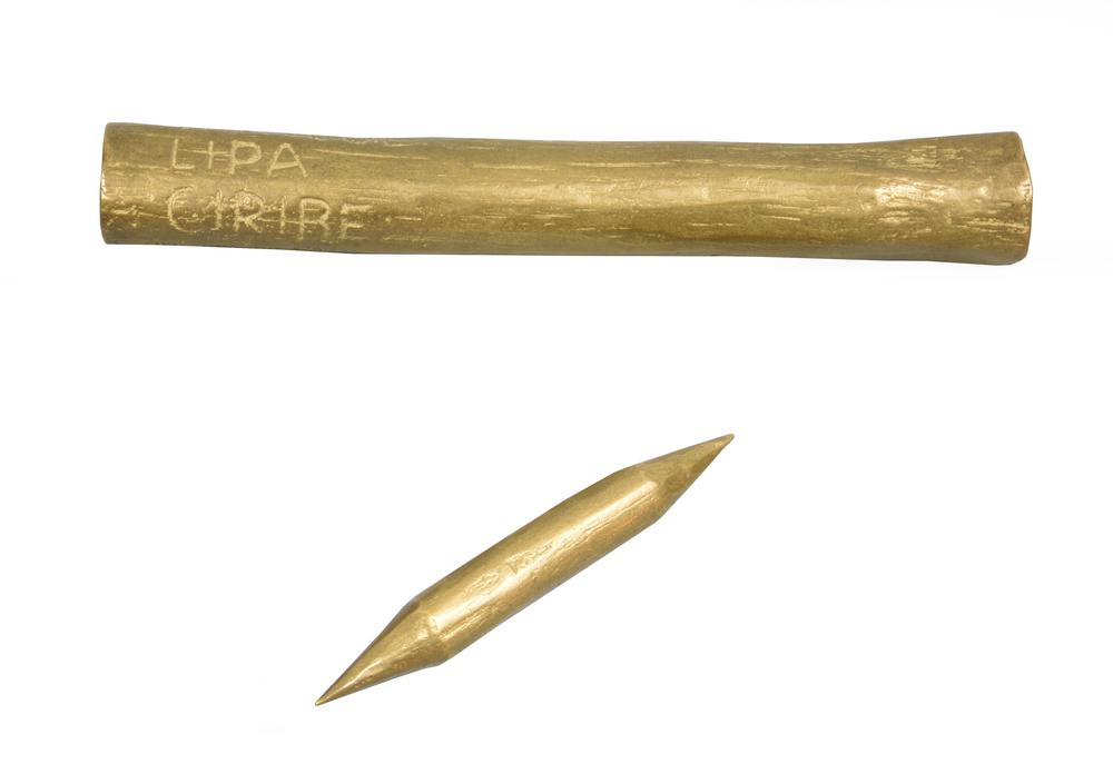 Sarenco CIANCOL, 1978 bronzo dorato, cm 4x28x4 e cm 2x15,5x2 titolo...
