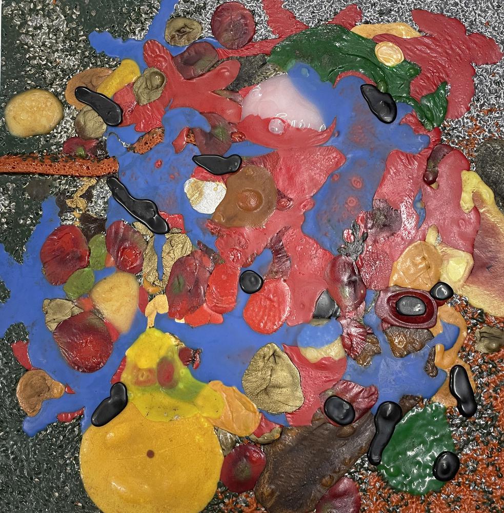 Omar Ronda GENETIC FUSION, 1990 materie plastiche, cm 45x45 sul retro: firma,...
