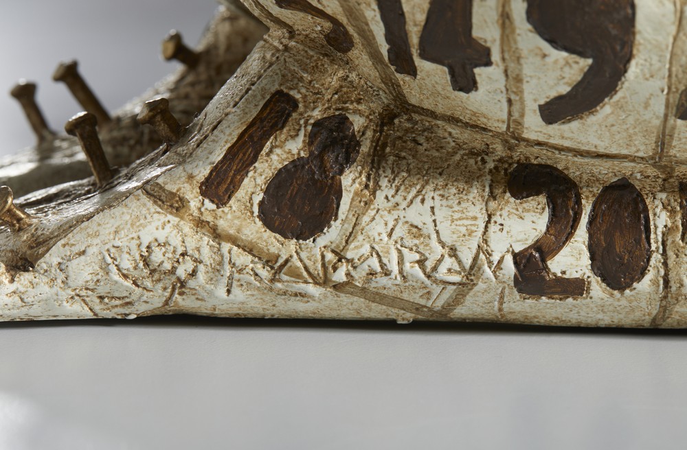 L'opera è accompagnata da certificato dell'Archivio delle opere di Rabarama, a cura della Galleria Dante Vecchiato, Padova in cui le misure sono cm 18x43x21
