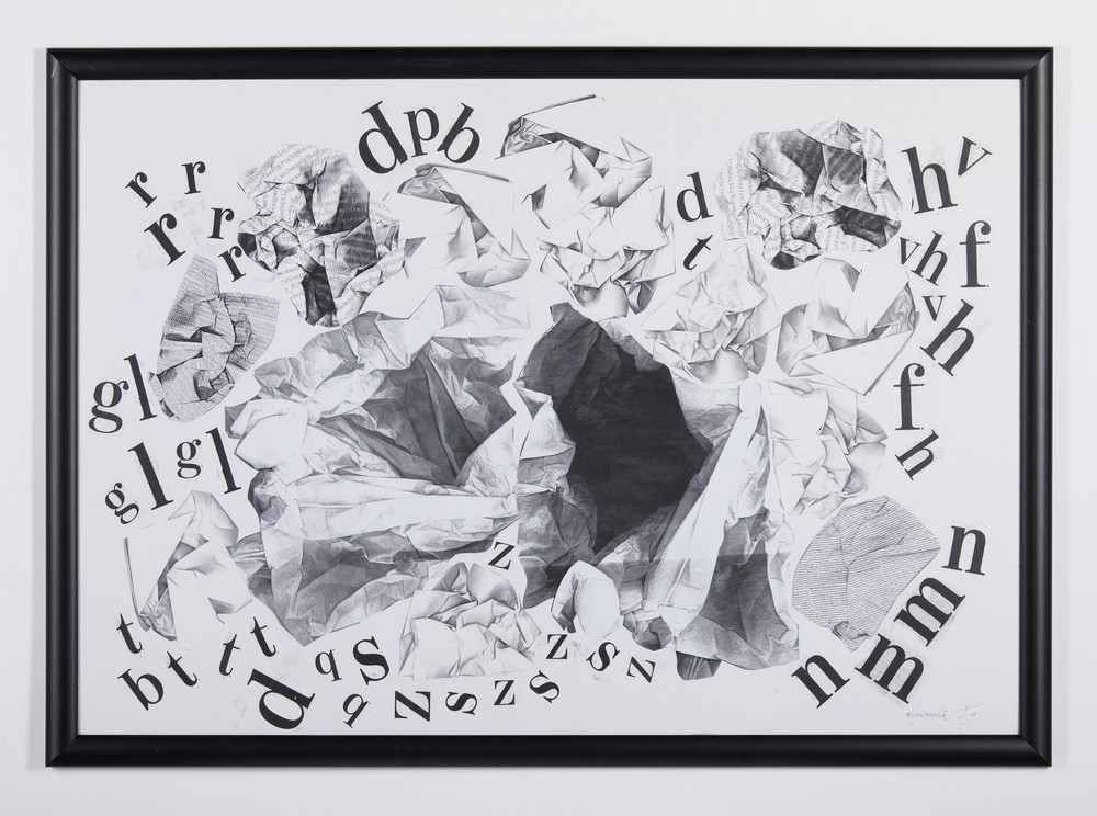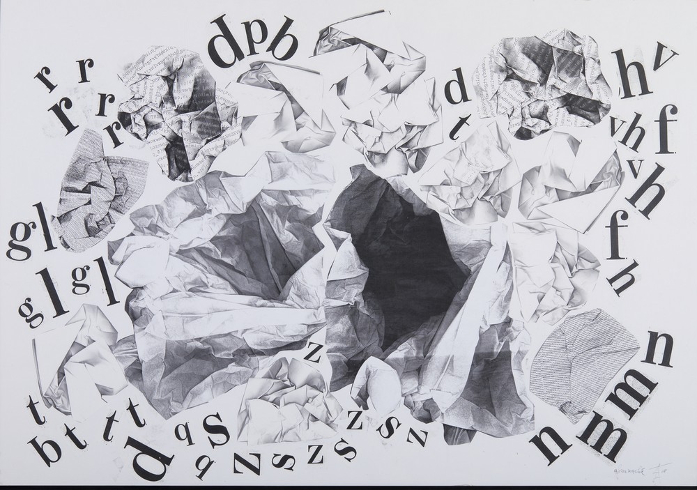 LORA - TOTINO ARRIGO (1928 - 2016) AFONAMACHIA. 2008. collage su carta. Cm 100,00 x 70,00. firma, data e titolo