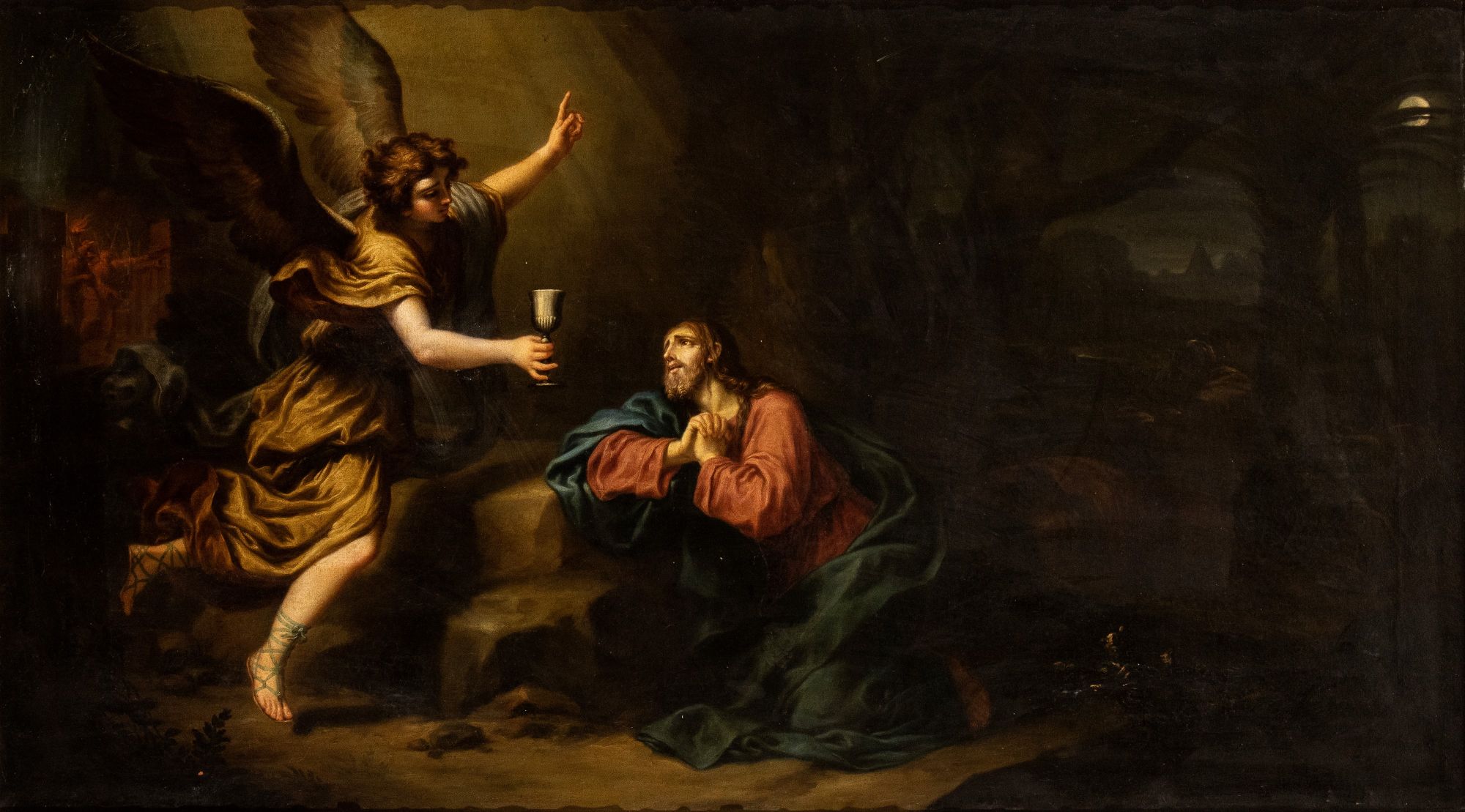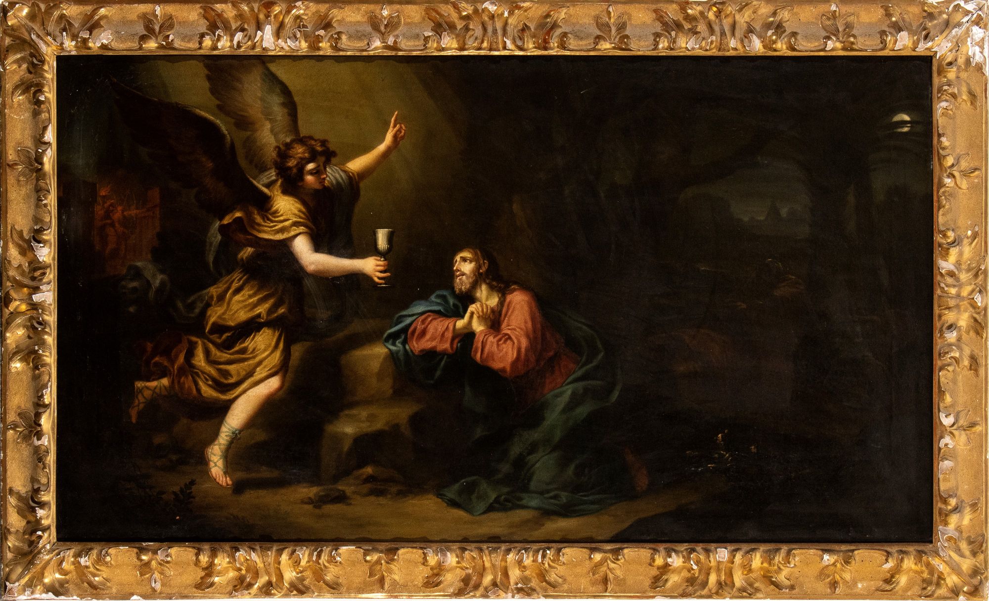 Oration in the garden Oil on canvas cm. 80x144. Framed The painting bears on the back at top left the signature and date in brushstroke: "FRAN. CAPURI F. 1797".