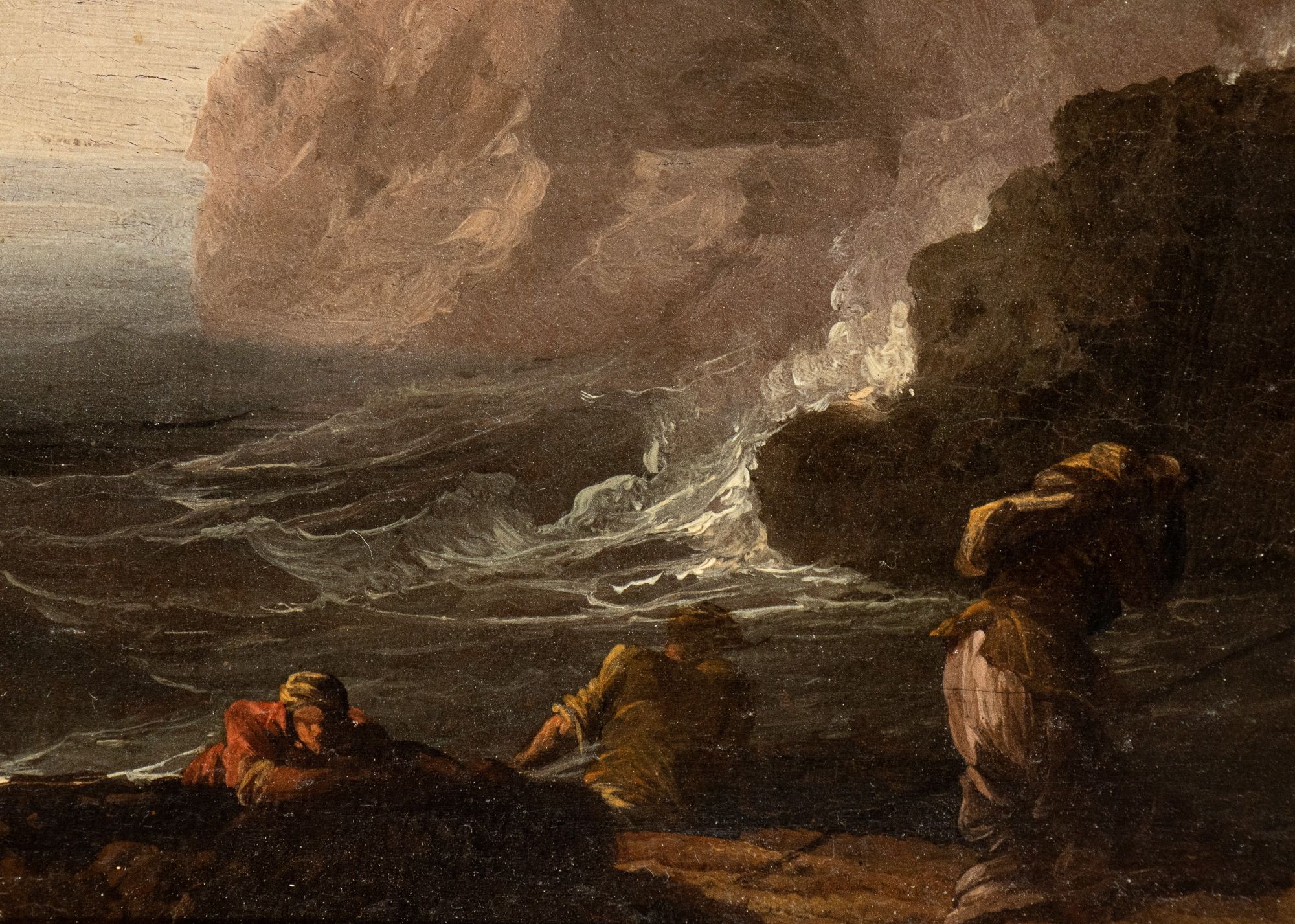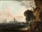 a) Marina con scogliera, naufraghi e cittadella sullo sfondo; b) Marina con pescatori, galera e faro. Coppia di dipinti