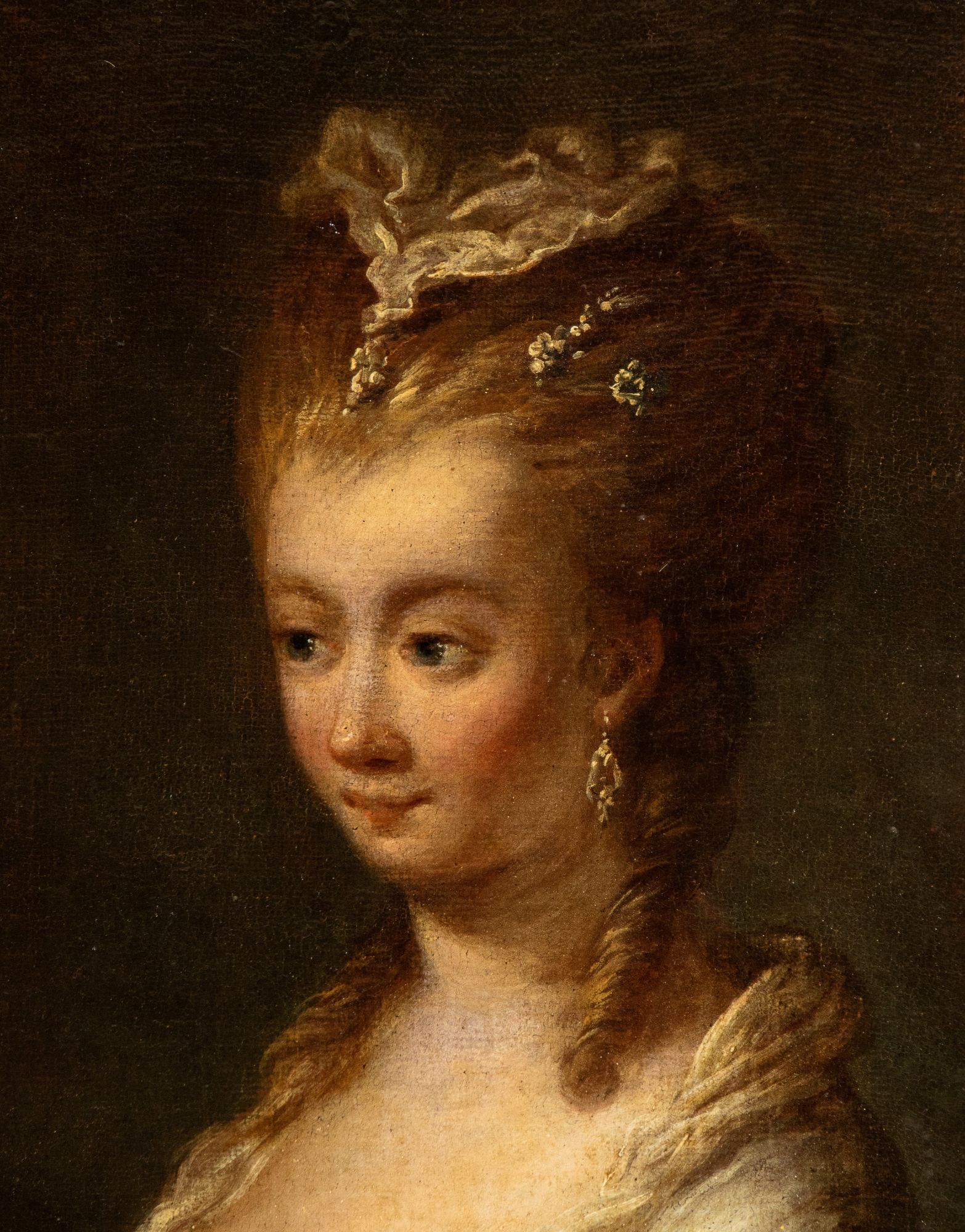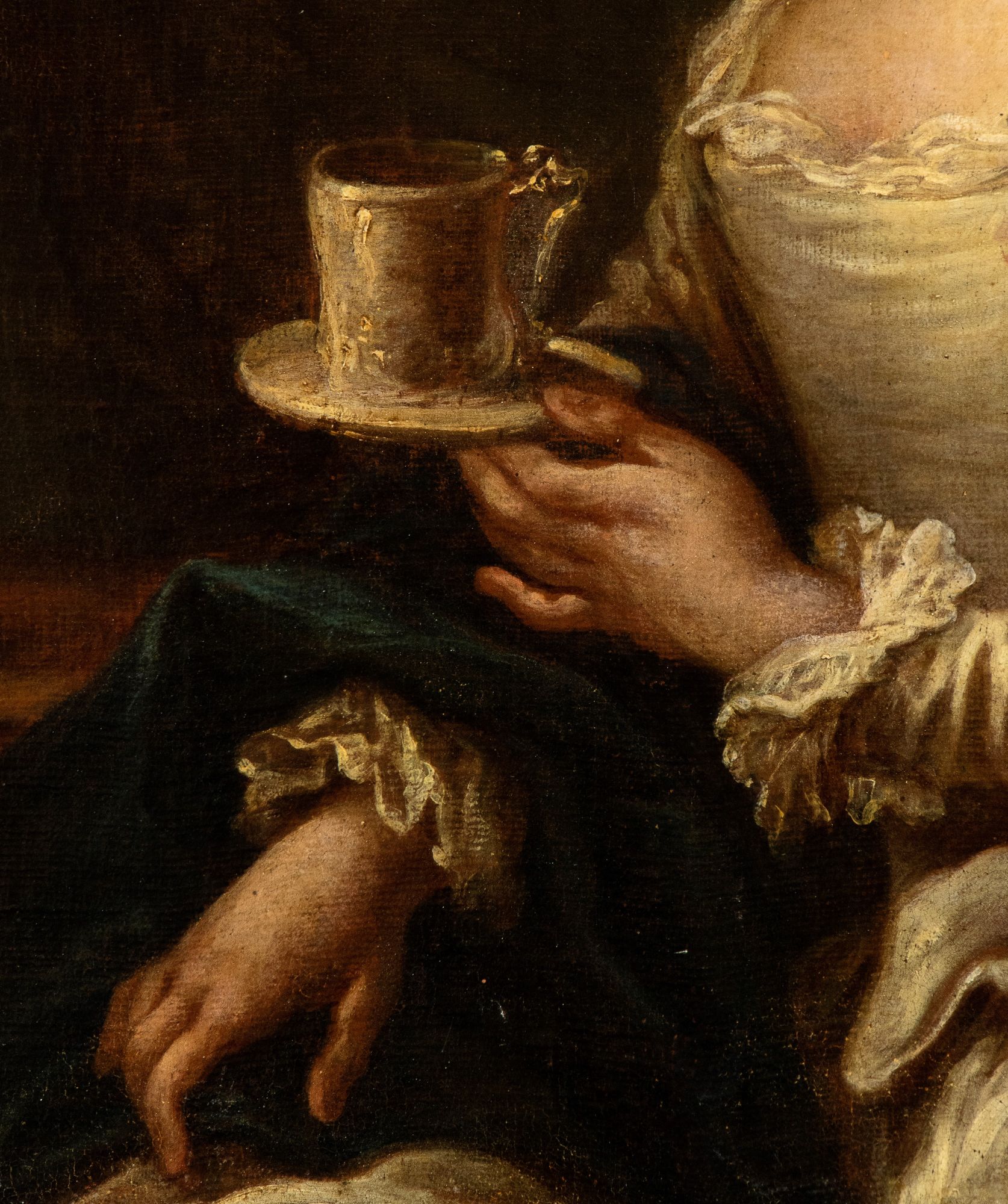Portrait of a lady with teacup Oil on canvas cm. 72x54,5 The painting is accompanied by an expertise by Prof. Ferdinando Bologna.