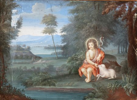 Saint John the Baptist in a river landscape Tempera on panel cm. 19x25. Framed Mariella Devia collection, Rome.