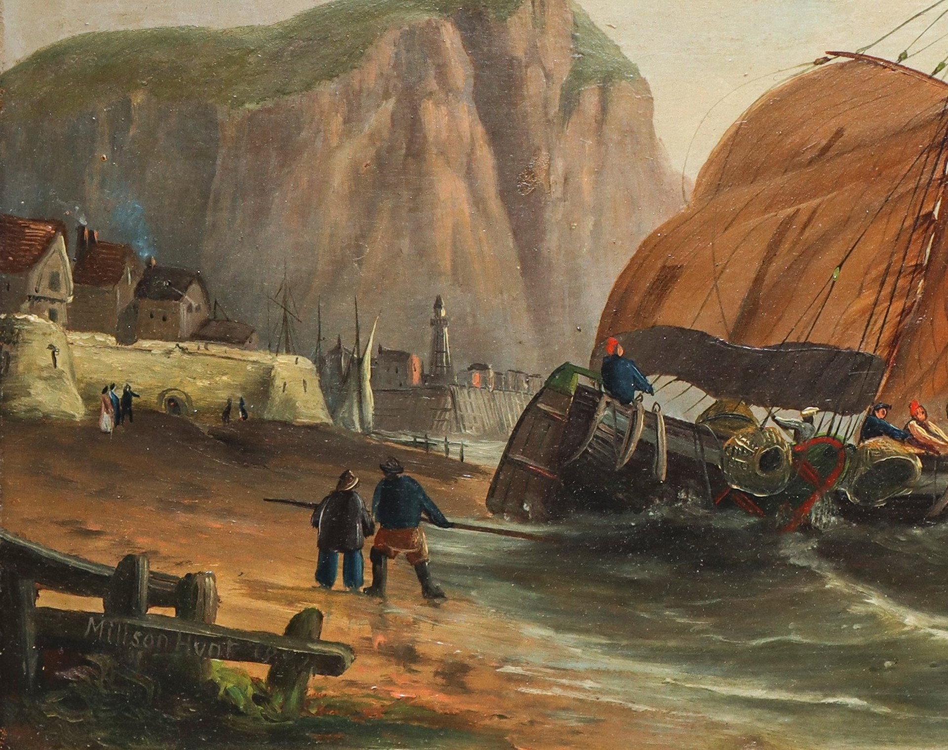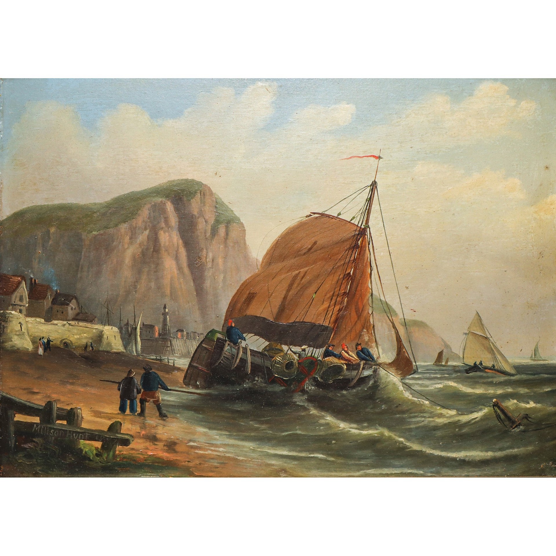 Harry Millson Hunt (Inghilterra 1830-1903) - Veliero al rientro nelle coste della Cornovaglia, Dutch painter, 19° secolo cm 23,5x31, in cornice di legno dorato cm 44x52 olio su tela Firmato in basso a destra