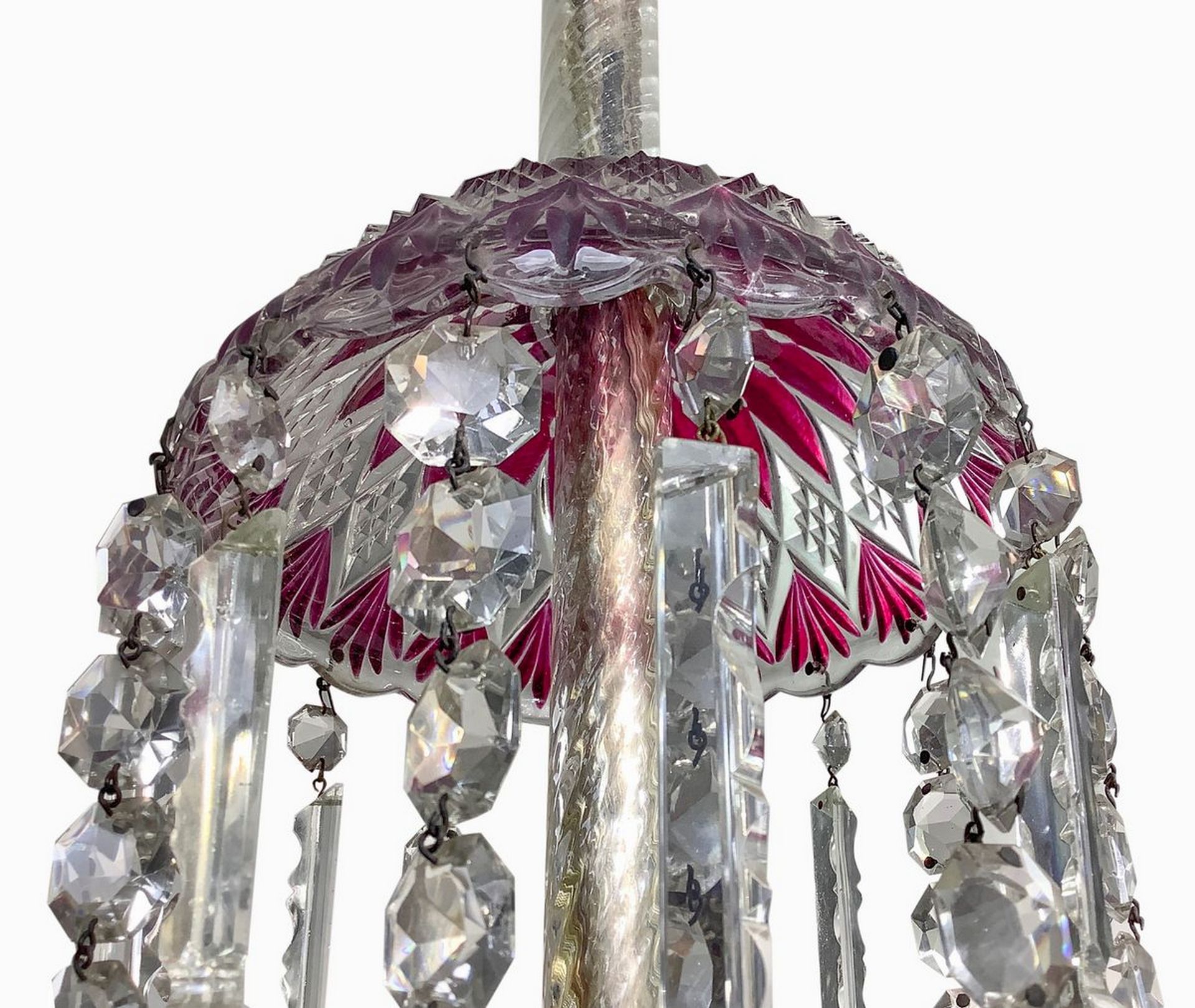 Lotto 63 | Baccarat France - Importante ed elegante lampadario in cristallo trasparente e bordeaux a 12 luci, 19° secolo