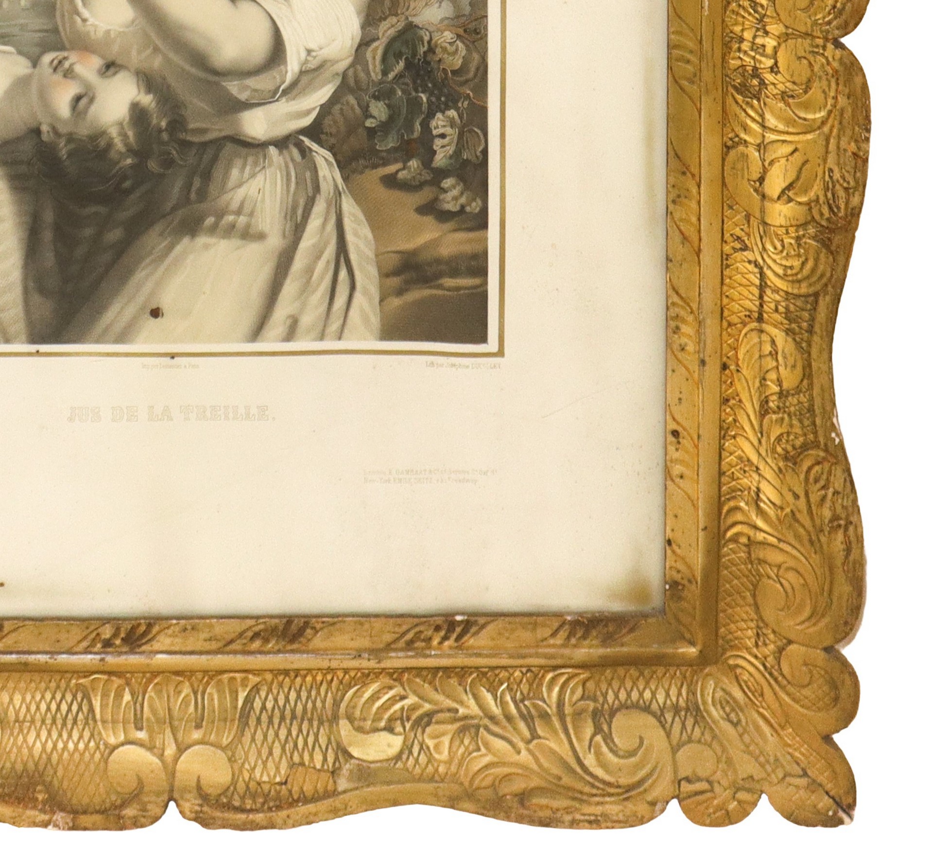 Cornice a vassoio in legno dorato a foglia bulinato, Sicilia 19° secolo esterno h cm 80X66 interno h cm 62X47