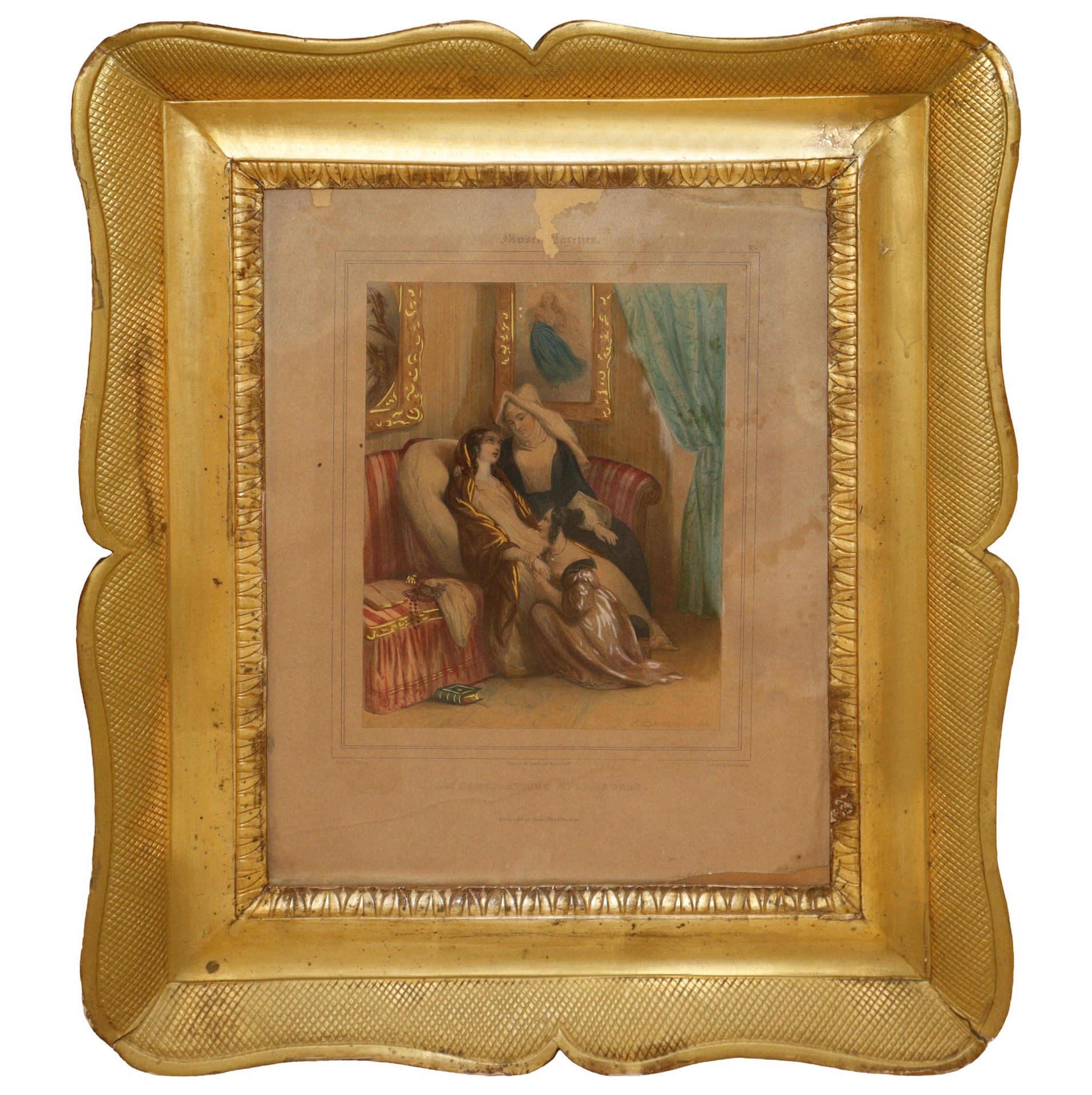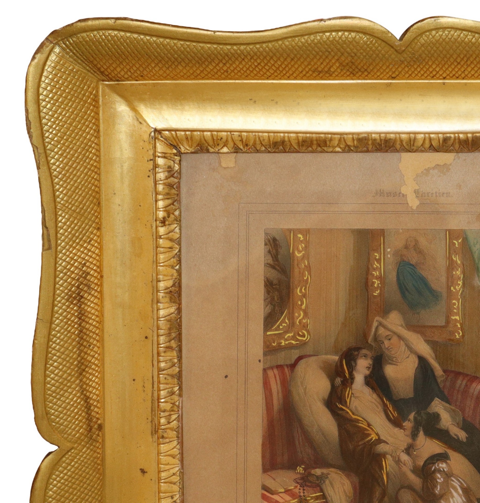 Cornice a vassoio in legno dorato a foglia bulinato, Sicilia 19° secolo
