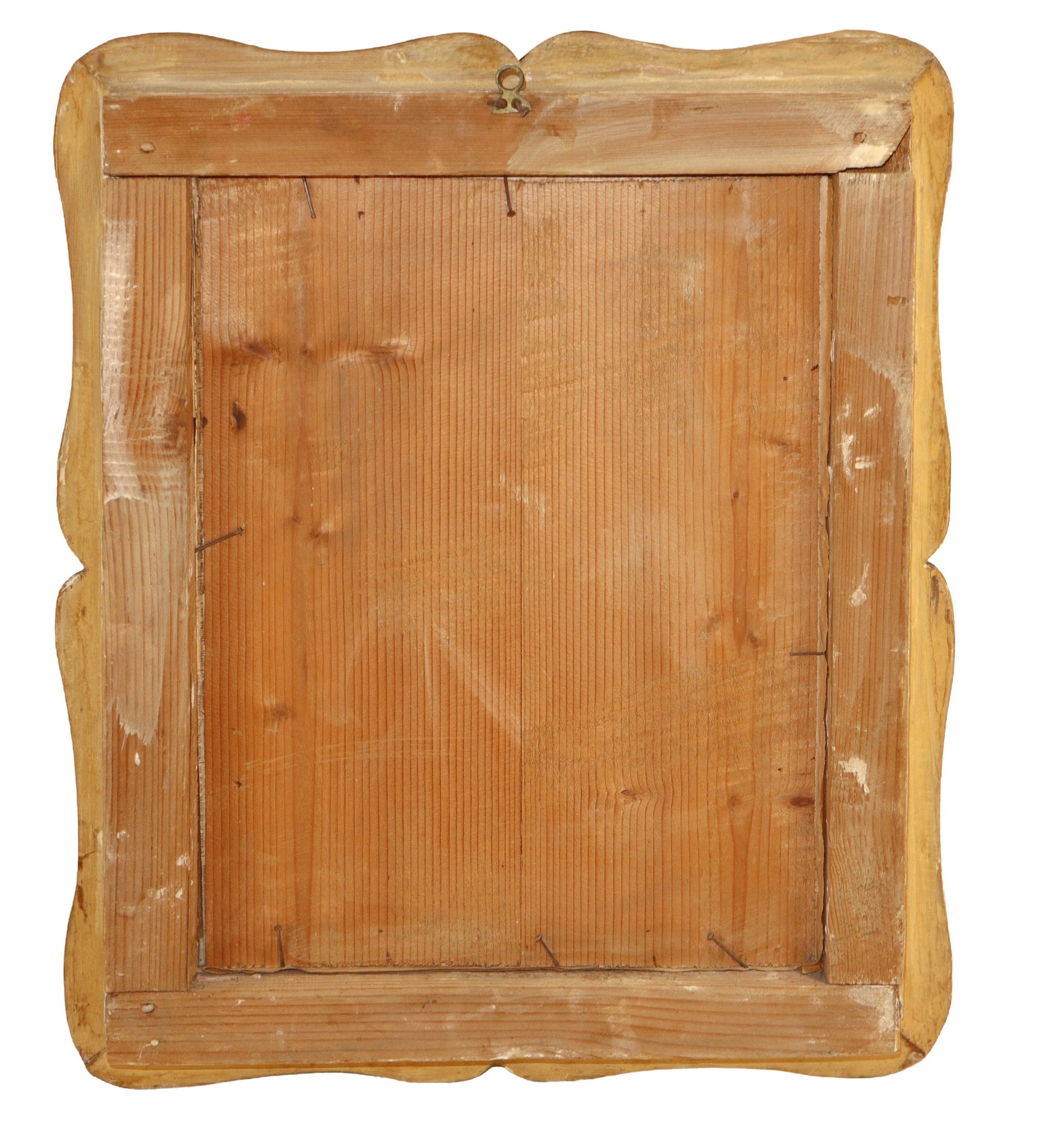 Cornice a vassoio in legno dorato a foglia bulinato, Sicilia 19° secolo esterno h cm 53X42 interno h cm 38X29