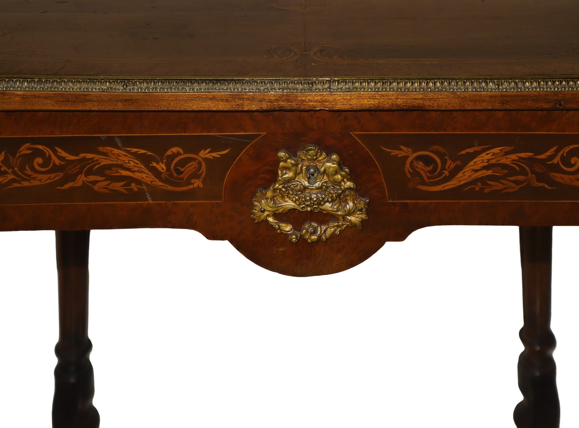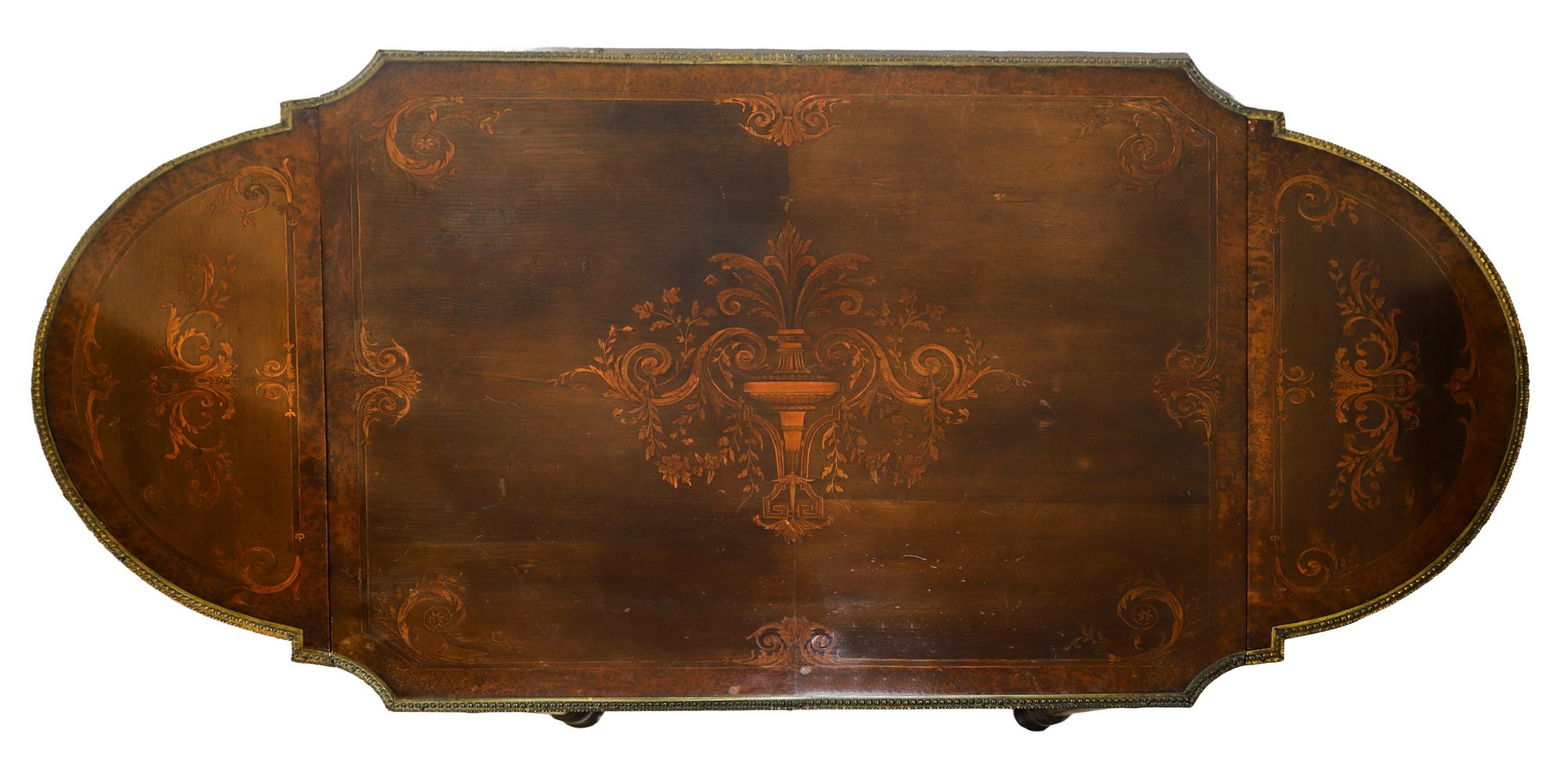 Tavolinetto a bandelli Napoleone III, France 19° secolo Piano intarsiato con bordo in ottone dorato, cassetto sottopiano, piedi a colonna scanalata troncopiramidale.Piano intarsiato con bordo in ottone dorato, cassetto sottopiano, piedi a colonna scanalata troncopiramidale.