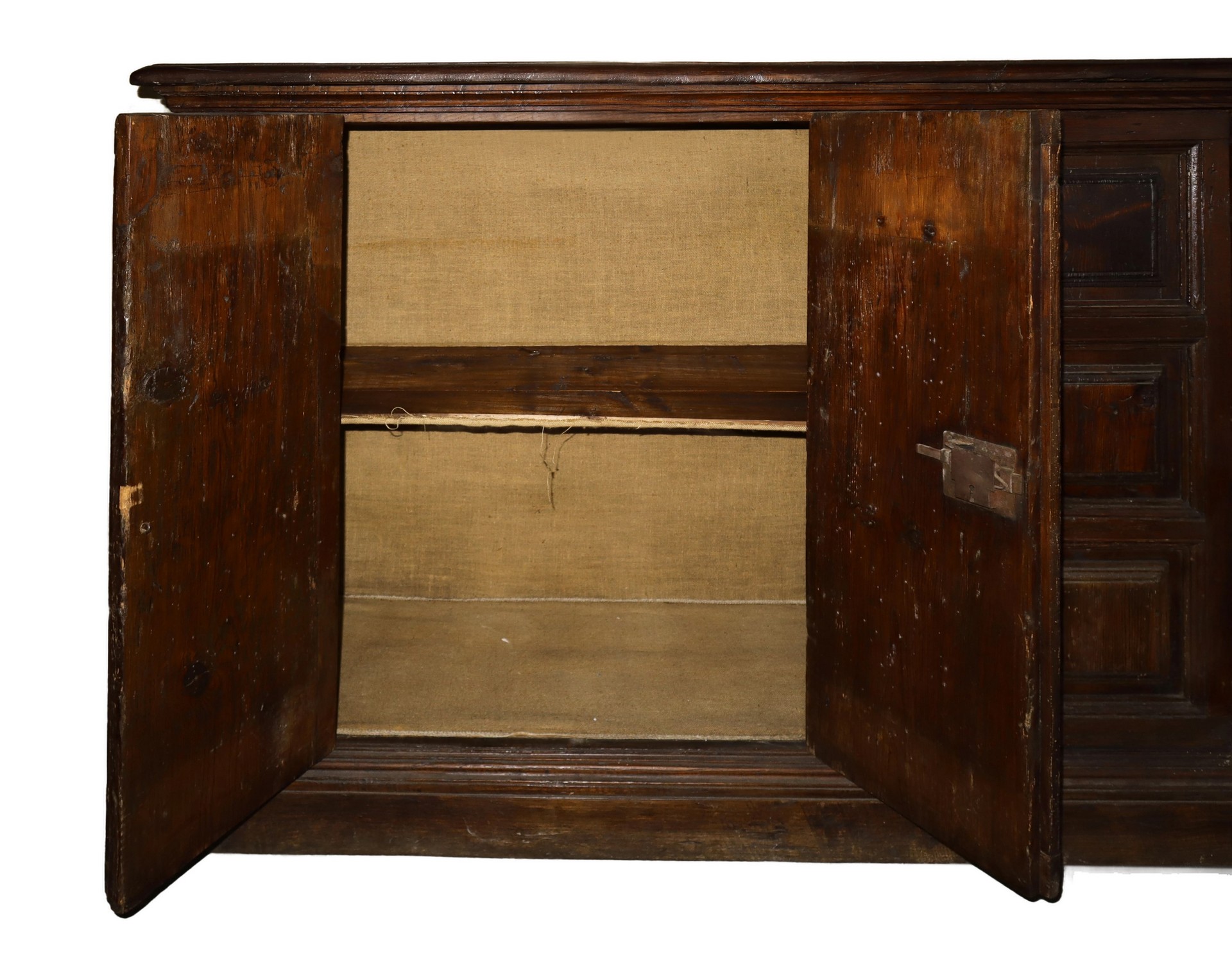 Mobile credenza da sagrestia basso con sportelli a quadri in legno, 17° secolo