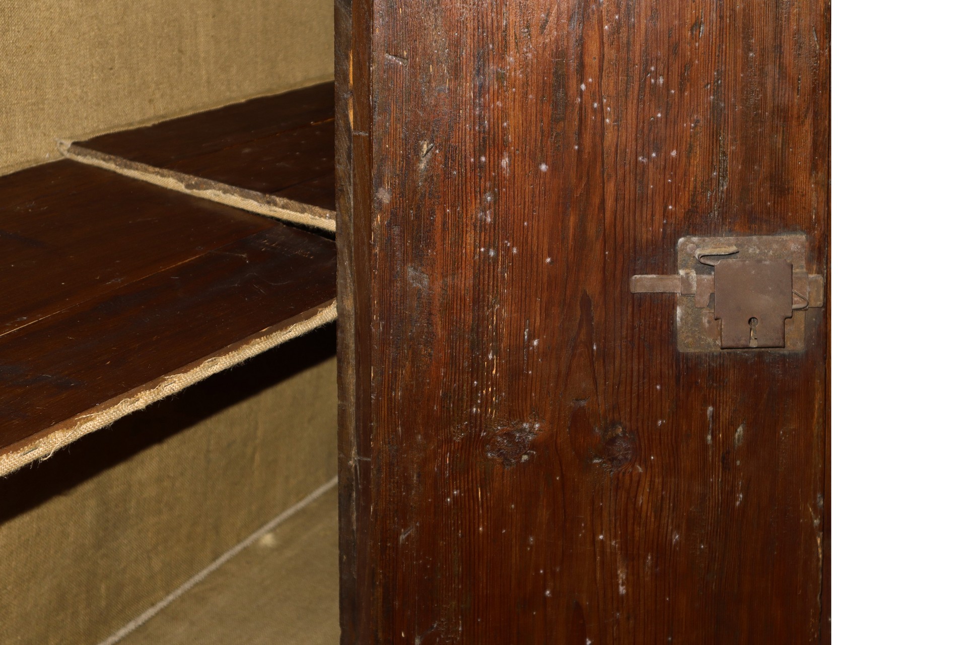 Mobile credenza da sagrestia basso con sportelli a quadri in legno, 17° secolo cm 127X224X57