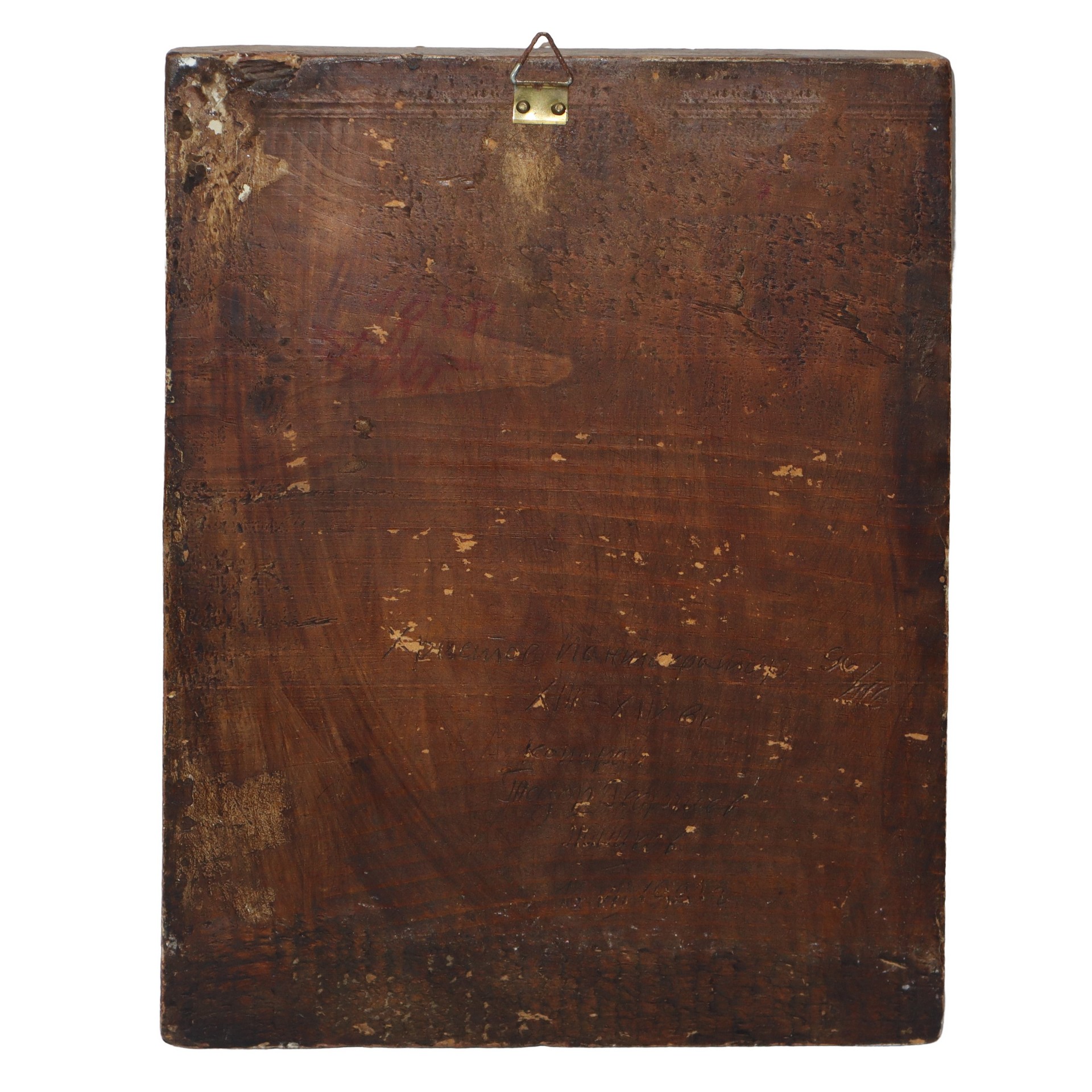 Icona russa raffigurante Santo volto di Cristo e quattro Santi ai lati, 18° secolo h cm 26,5X22 tempera su tavola Mancanza sull'angolo inferiore sinistro