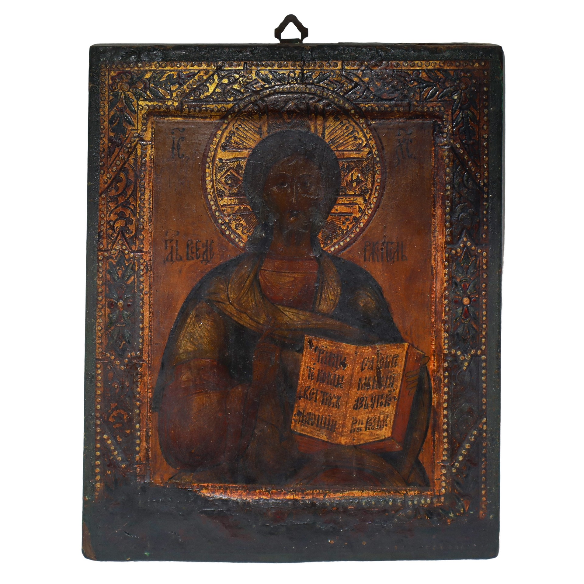 Icona russa raffigurante Cristo Pantocratore con libro, 18° secolo