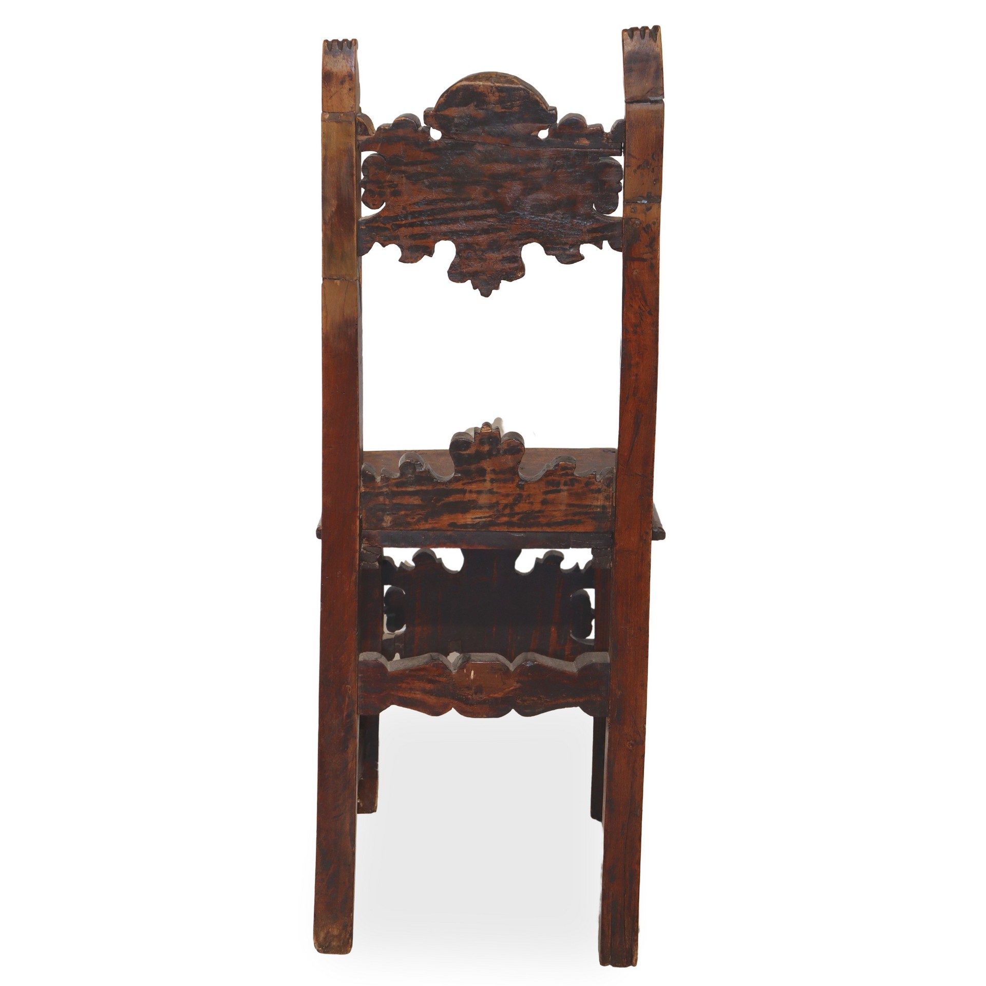 Seggiolone a cartella, Tuscany, 16° secolo h cm 113X40X35 Spalliera con cartigli intagliati.