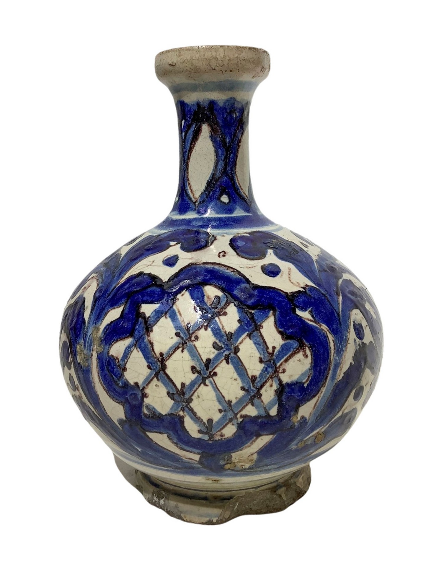 Officine Maiolicane Caltagironesi - Bottiglia, 18° secolo h 23 cm Maiolica Fondo bianco con ramage a larghe foglie che inquadrano fiori di gelsomino in blu