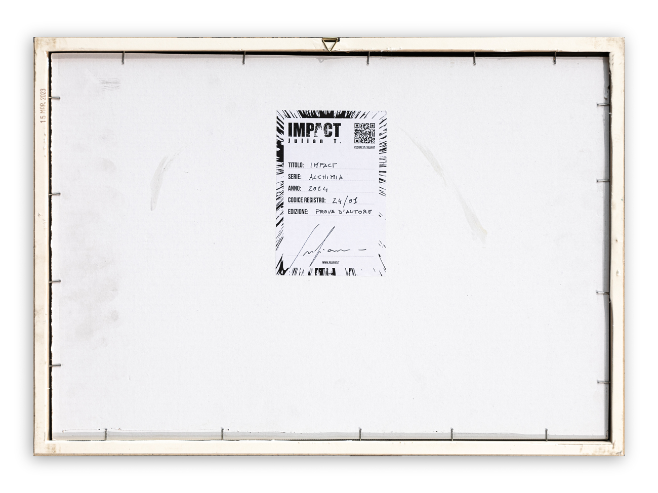 Etichetta dell'Artista con caratteristiche tecniche dell'opera al retro