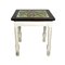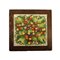 TAVOLO in legno di castagno di forma quadrata con base laccata e piano composto da 9 mattonelle in ceramica dipinta in policromia raffigurante fichi d'india , manifattura Fabio Boria Caltagirone XX secolo Caltagirone XX secolo