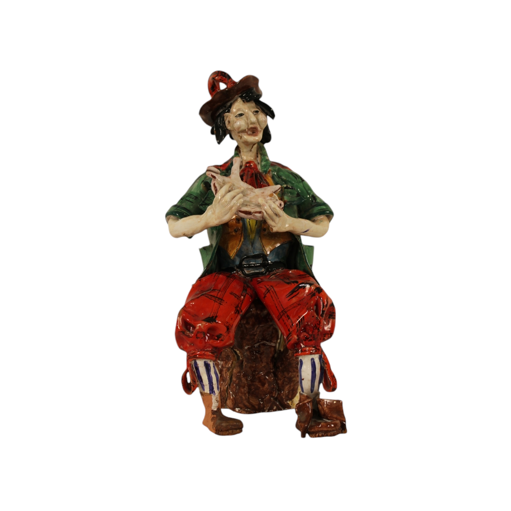 GRUPPO SCULTOREO in maiolica policroma raffigurante personaggio Sicilia XX sec Sicilia XX sec h cm 33 x 17 x 20
