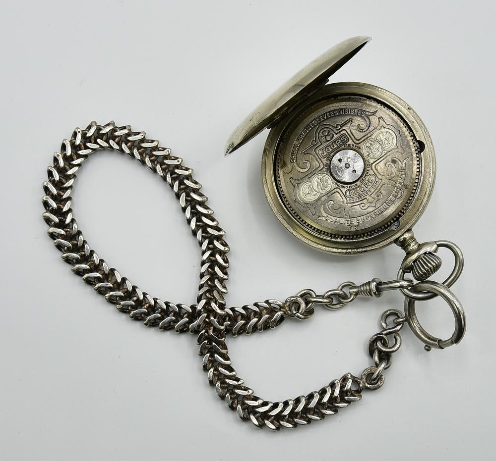 Orologio da tasca in metallo Hebdomas, catena in argento, 1850 CASSA: in...