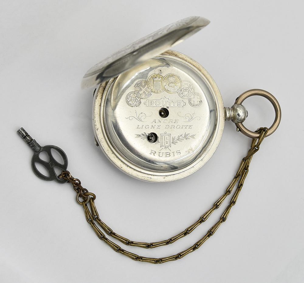 Orologio da tasca con chiave Boutte, Svizzera, fine 800, argento 875/1000, Ref. 70248