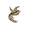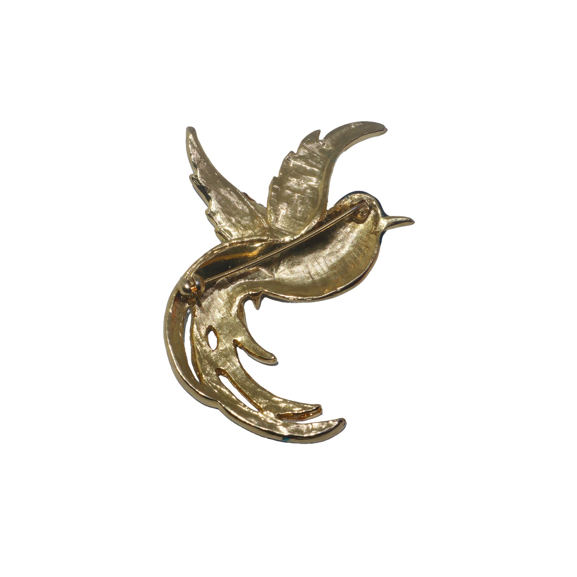 Spilla raffigurante un colibrì in metallo dorato, smalti policromi e strass