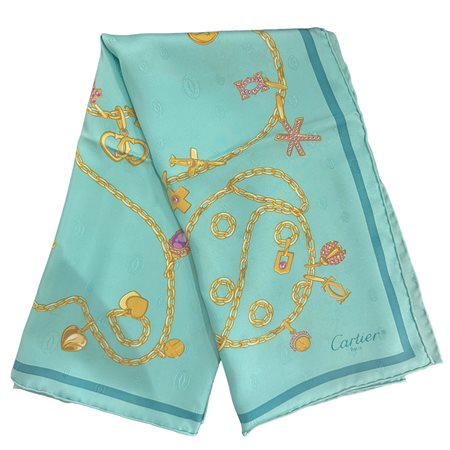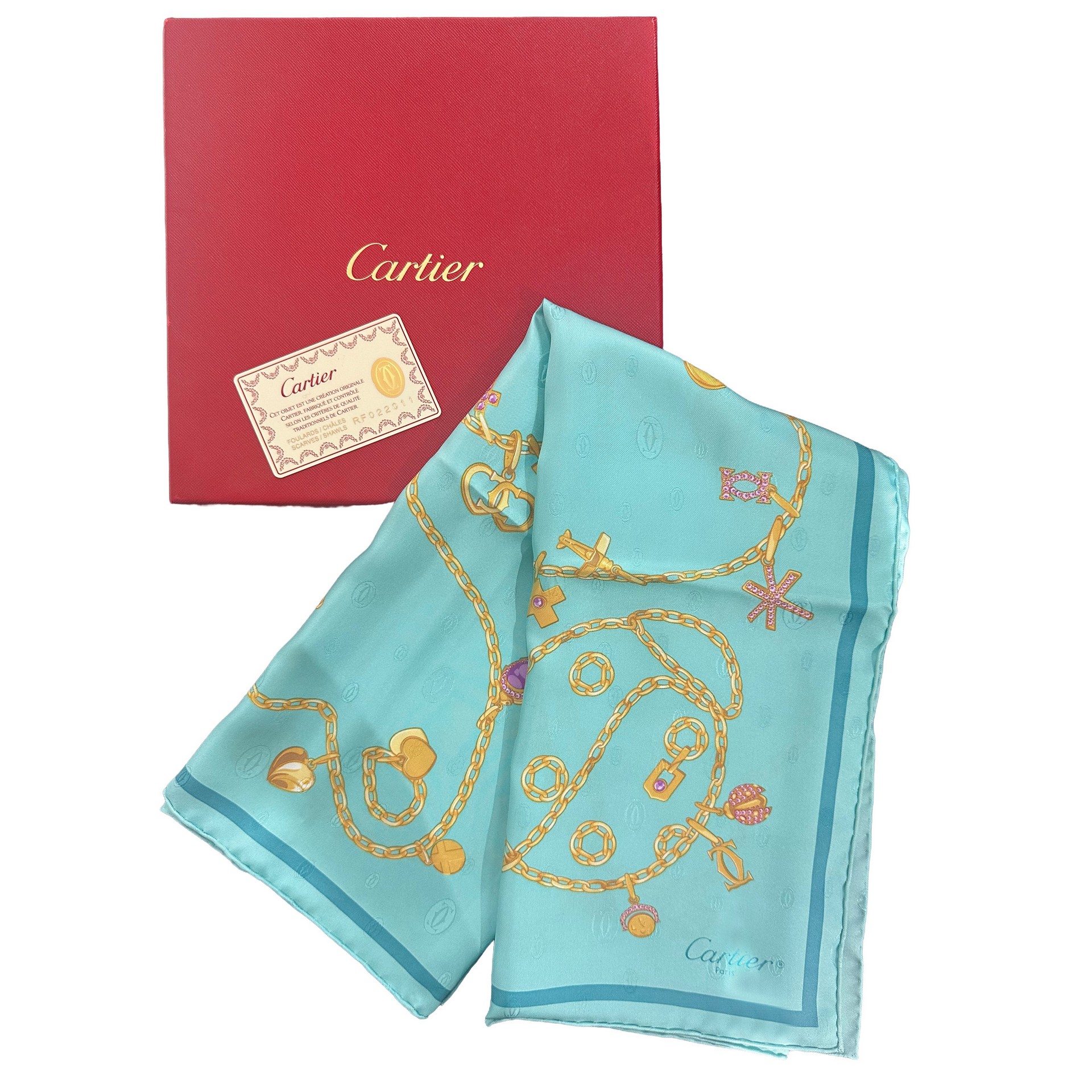 Cartier - Foulard in seta azzurro cm 67X67 Marchio in basso a destra. Etichetta. Dotato di scatola originale e garanzia RF 022011Marchio in basso a destra. Etichetta. Dotato di scatola originale e garanzia RF 022011