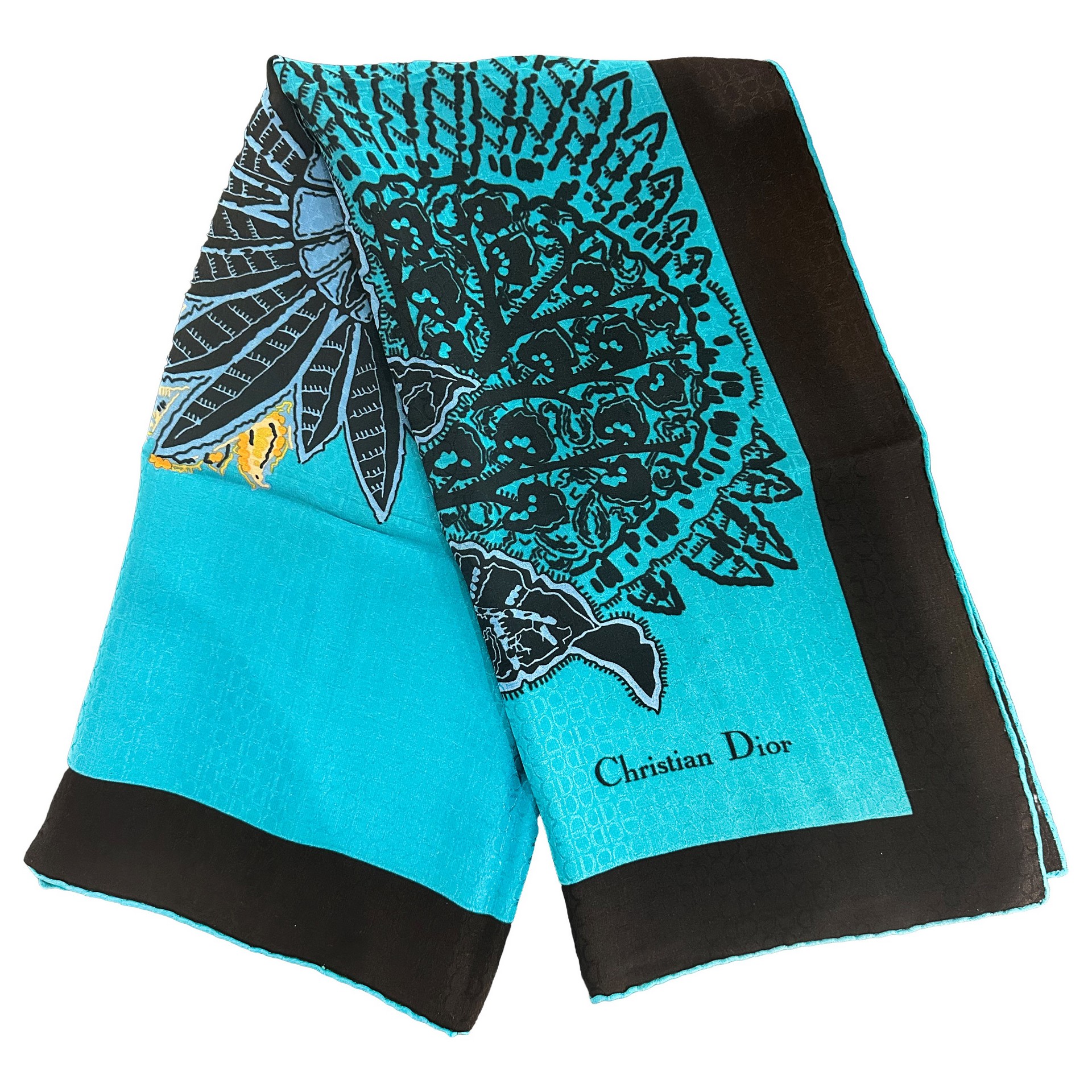 Christian Dior - Foulard in seta sui toni dell'azzurro con fiori policromi