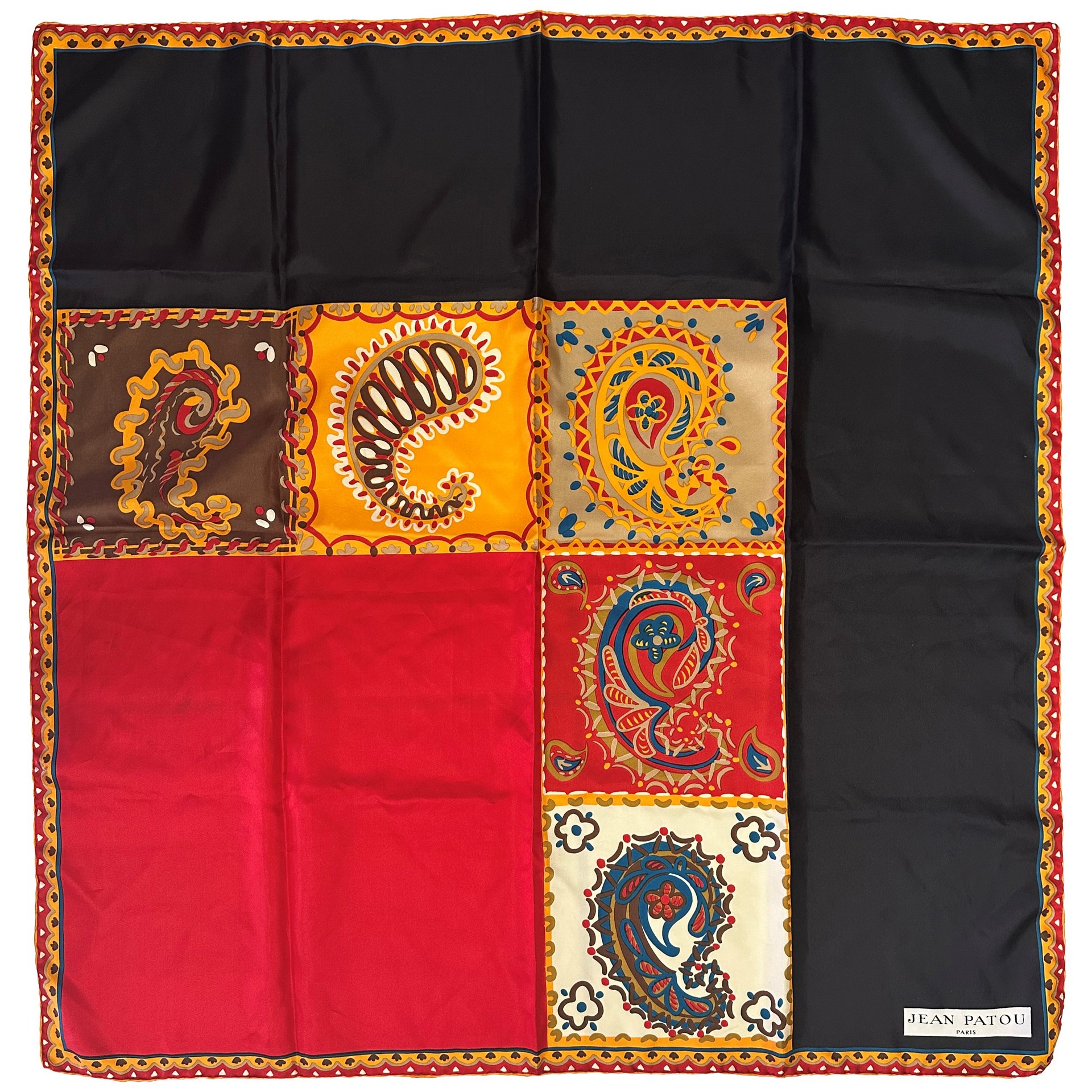 Jean Patou (Parigi 1914) - Foulard in seta con motivi paisley su fondo nero