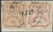 1859 - 40 cent. Vermiglio n.17 usati ed accostati come vennero usati in origine. Il valore di destra presenta la varietà costante '' Seconda T di STATI tagliata '' e '' A di Parmensi rotta in alto '' (n.17+17c). Insieme estremamente raro e di ottima qualità. Cat. 49.500. (A+) (cert. En. Diena, Emilio Diena per esteso su entrambi i valori).