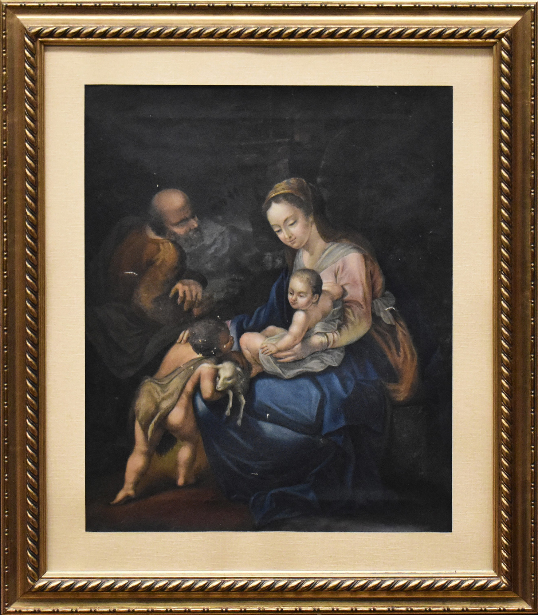 'Sacra famiglia con San Giovannino' olio su tela sec XIX