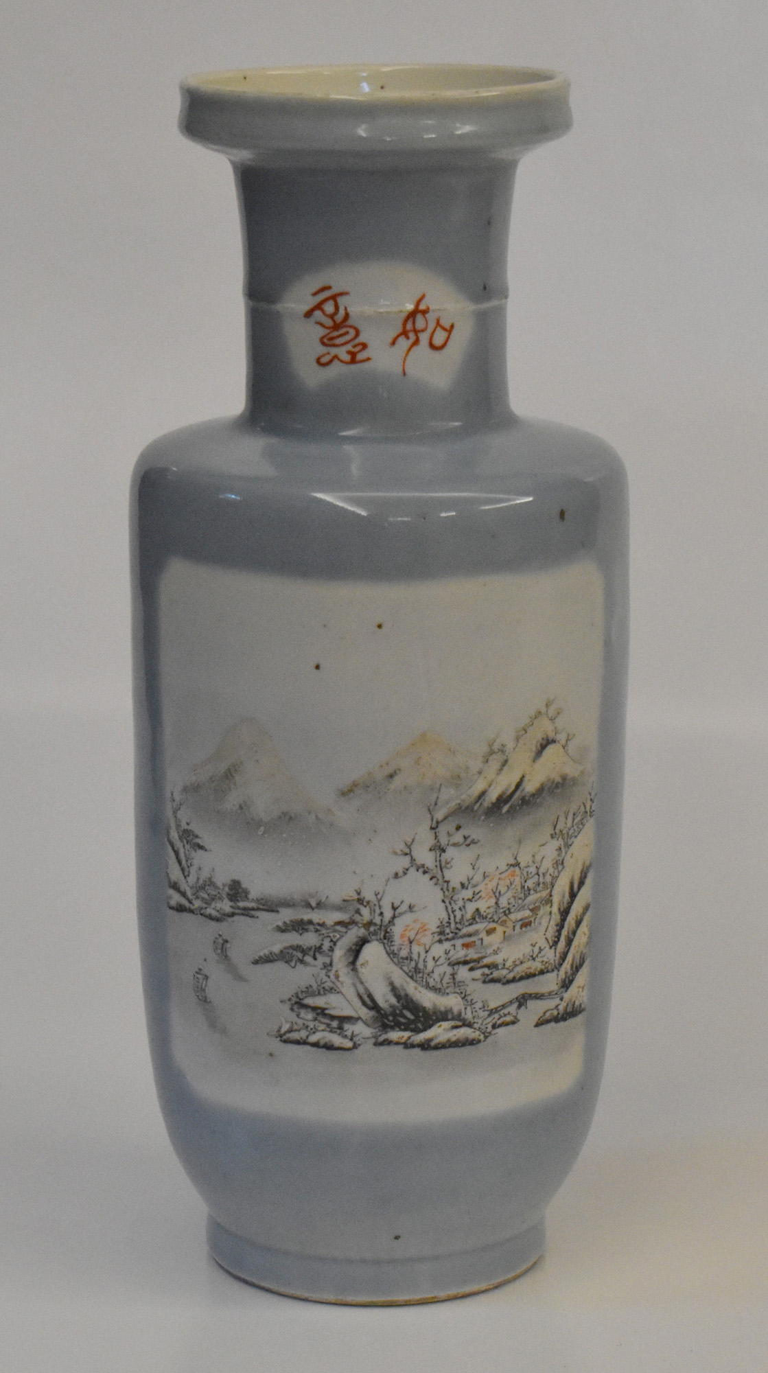 Cina vaso in porcellana fondo azzurro con riserve a paesaggio innevato
