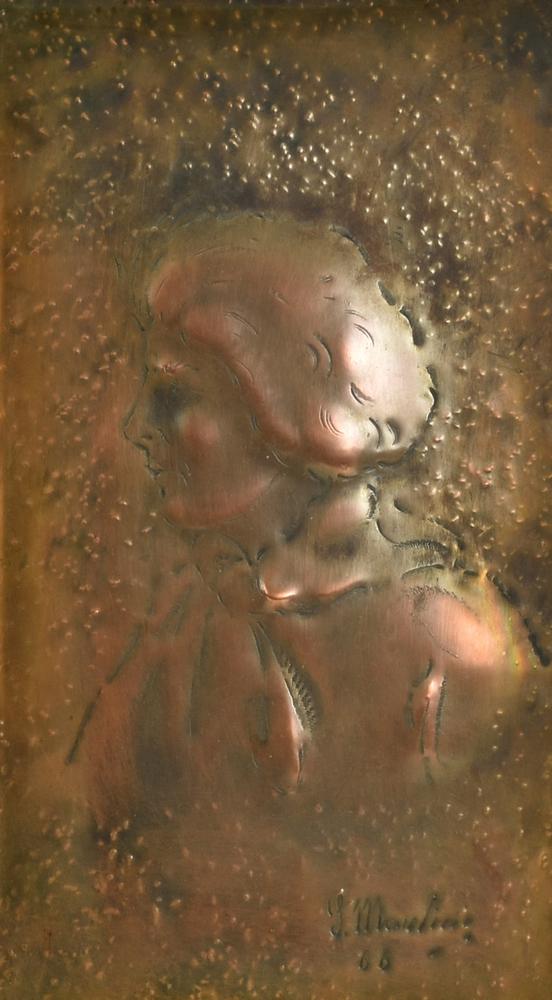 Spartaco Martini POPOLANA scultura in rame, cm 26x15 firma e data eseguita...