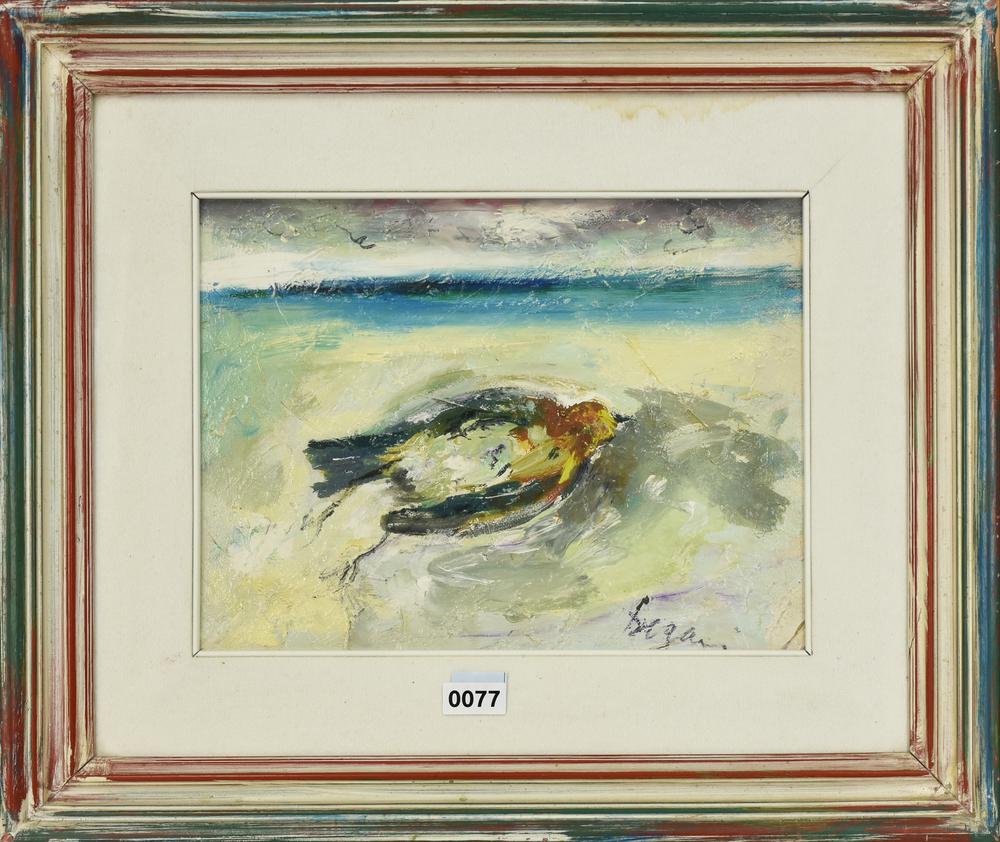 Eugenio Degani IL PETTIROSSO olio su cartone, cm 32x40 firme sul retro: firma...