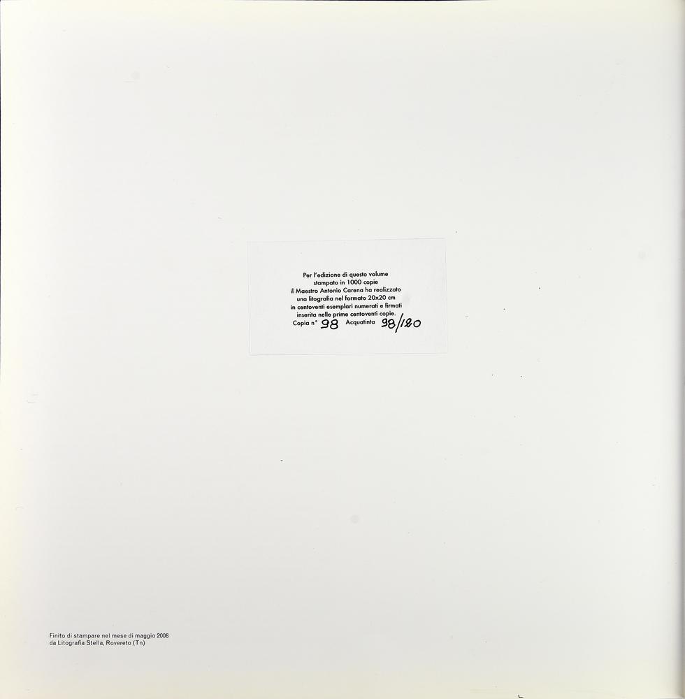 L’opera accompagna le prime centoventi copie dell’edizione del volume stampato in mille copie della mostra "Antonio Carena: facitore di cieli" tenutasi presso la GlobArt gallery, Acqui Terme, maggio 2008-luglio 2008