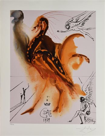 Salvador Dali' EL GRAN PAVO REAL lito-serigrafia su carta a mano Fabriano, cm...