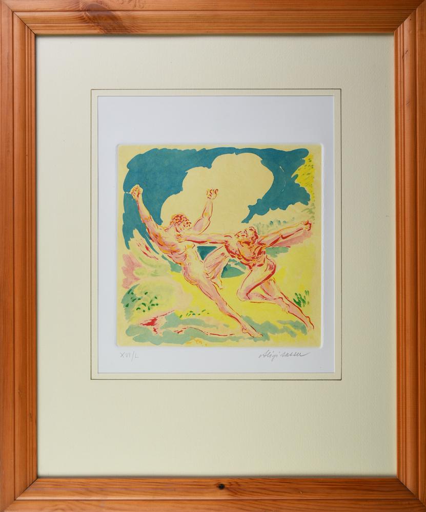 Aligi Sassu PROTEO LOTTA CON MENELAO, 1995 acquaforte-acquatinta, cm 22x22,...