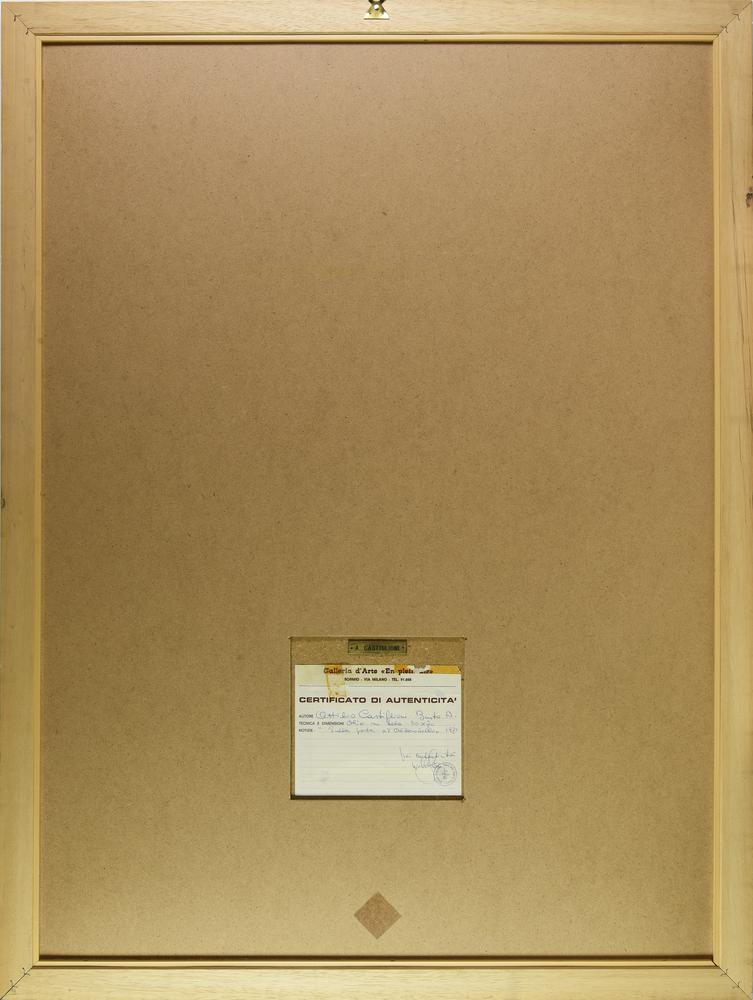 Attilio Castiglioni SULLA PORTA AD ALBEROBELLO, 1971 olio su faesite, cm...