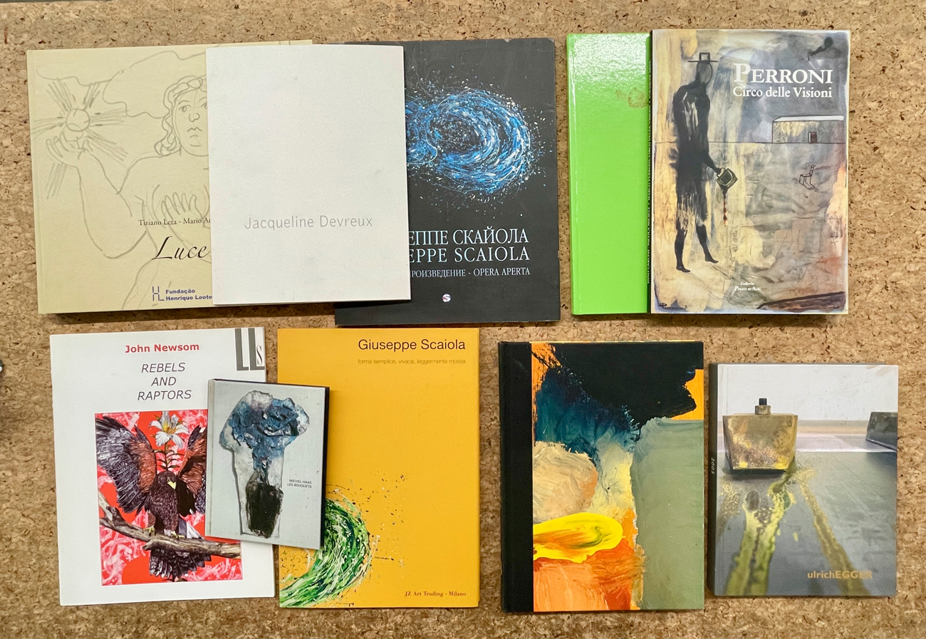 Lotto unico di 10 cataloghi relativi ai seguenti artisti: Antonella Stellini, Sergio Piccoli, Jacqueline Devreux, Marco Perroni, Michel Haas, Ulrich Egger, Giuseppe Scaiola (2), John Newsom, Tiziano lera e Mario arlati