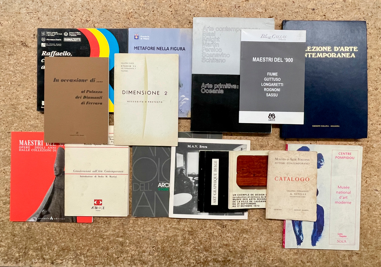 Scatola contenente numerosi cataloghi relativi a collettive d'arte italiana e internazionale del dopoguerra