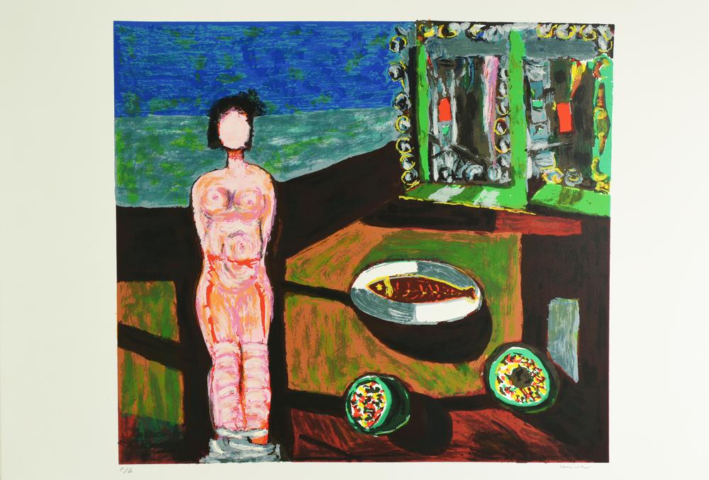 Bruno Cassinari NATURA MORTA CON NUDO serigrafia su carta Fabriano, cm 50x70;...