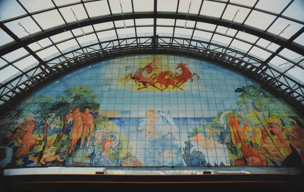 collage su cartoline raffiguranti "I miti del mediterraneo" murale che si trova nel nuovo Palazzo del Parlamento Europeo di Bruxelles, cm 12x17 ciascuna