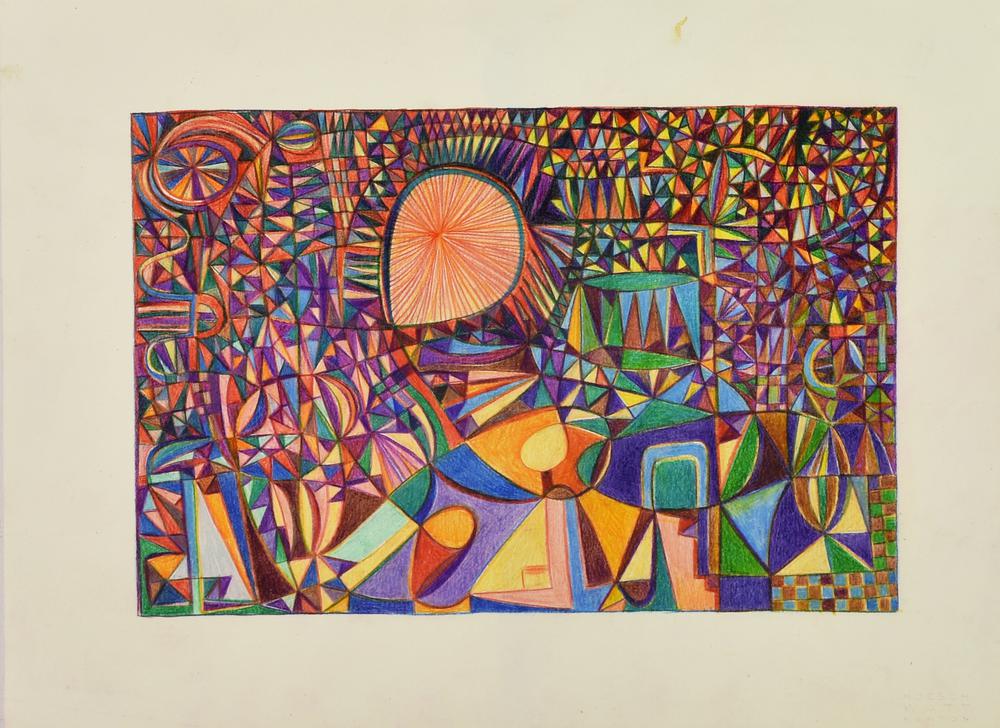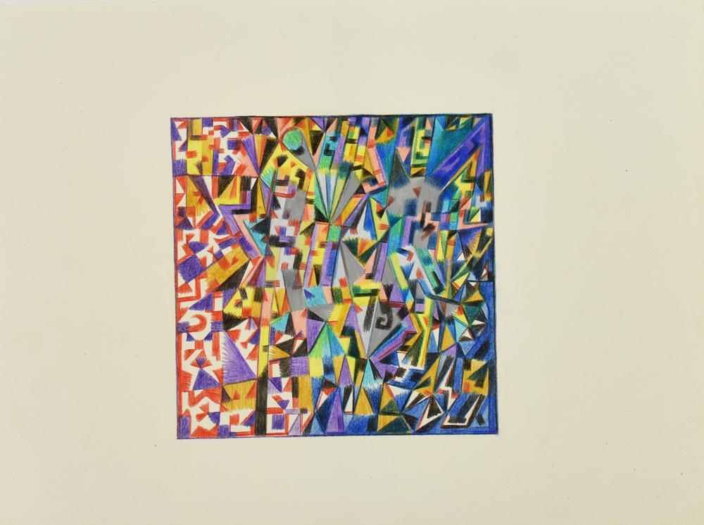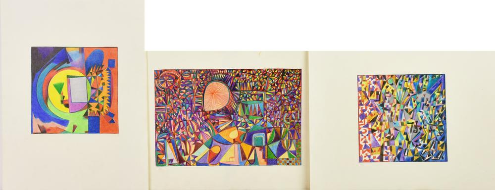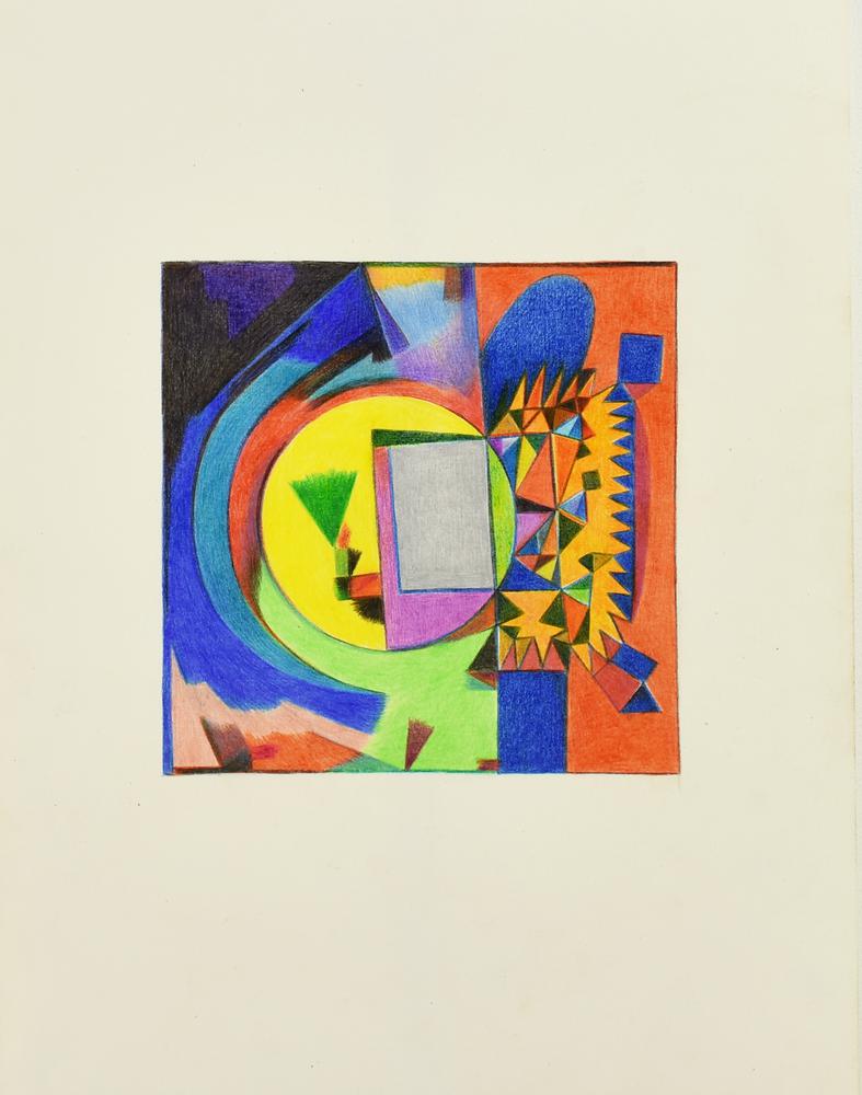 Enzo Branca COMPOSIZIONI, 1981 -matite colorate su carta, cm 25x33 sul retro:...