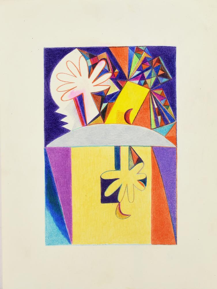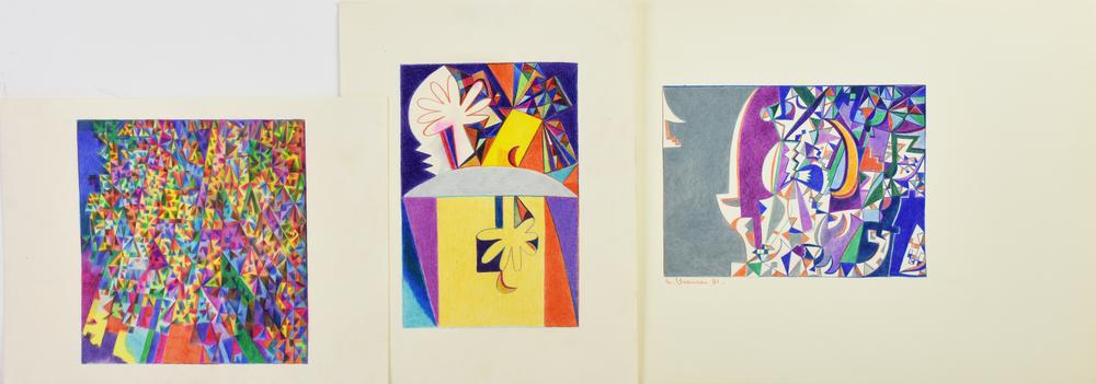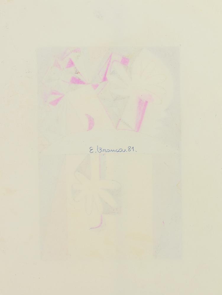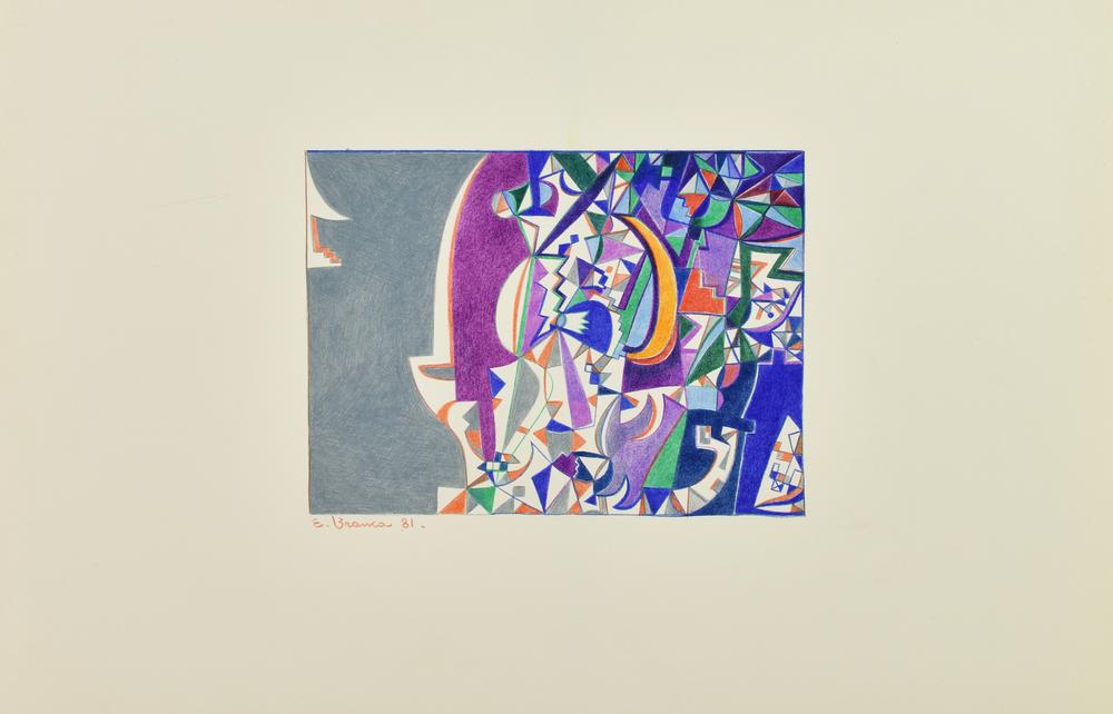 Enzo Branca COMPOSIZIONI, 1981 -matite colorate su carta, cm 25x33 sul retro:...