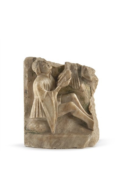 Scuola di Nottingham, secolo XV. "Figura in adorazione" frammento in alabastro
