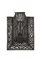 Serramento da mobile in ferro decorato e traforato a volute e santi. Copriserra