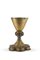 Calice in rame dorato a coppa liscia con fascia decorata a medaglie argentate c